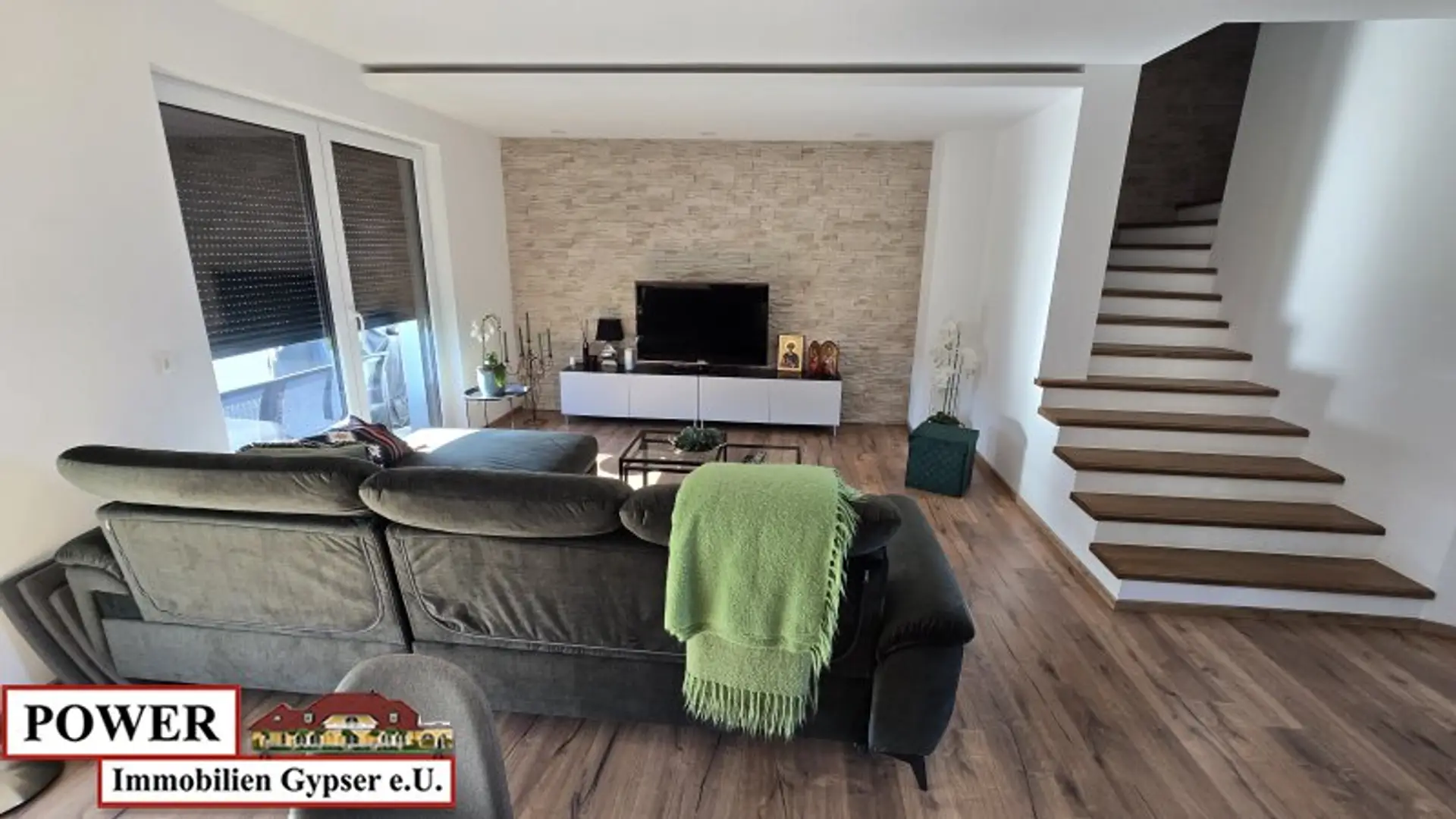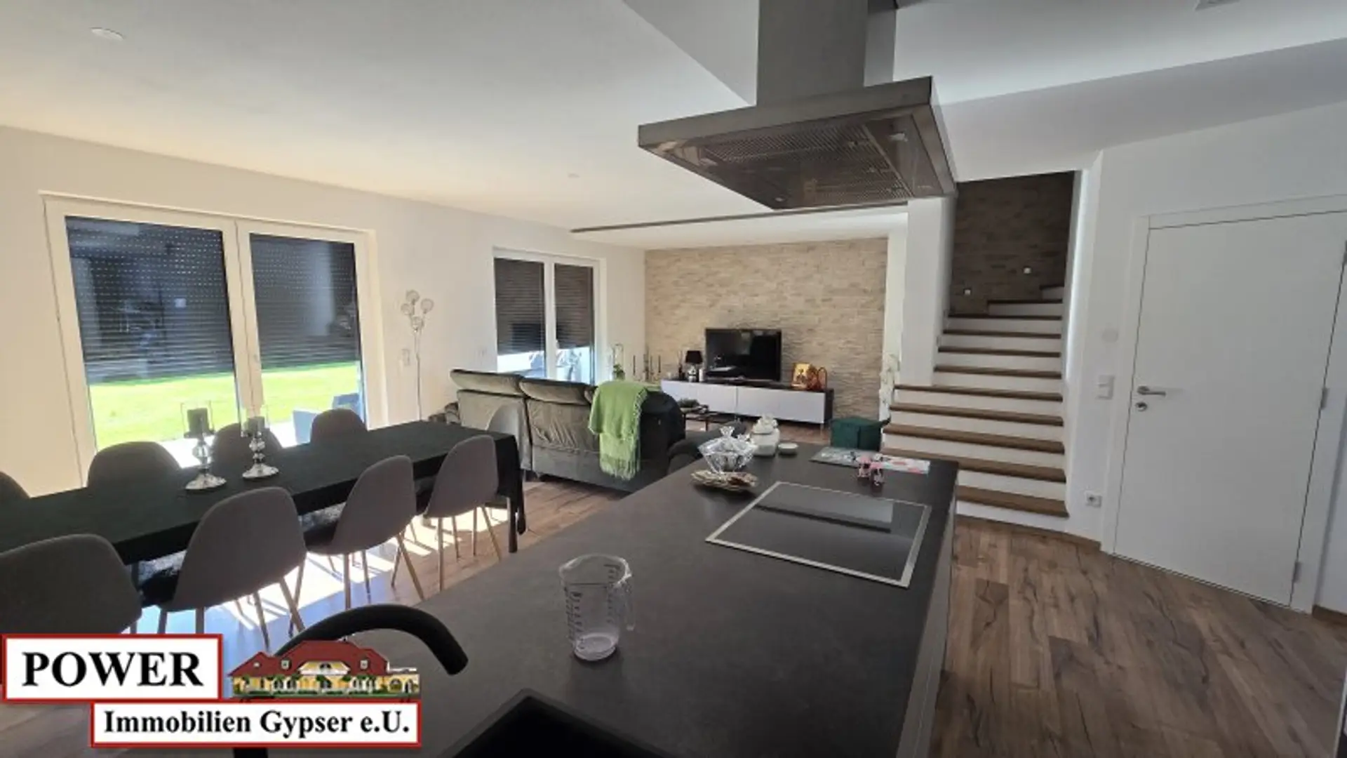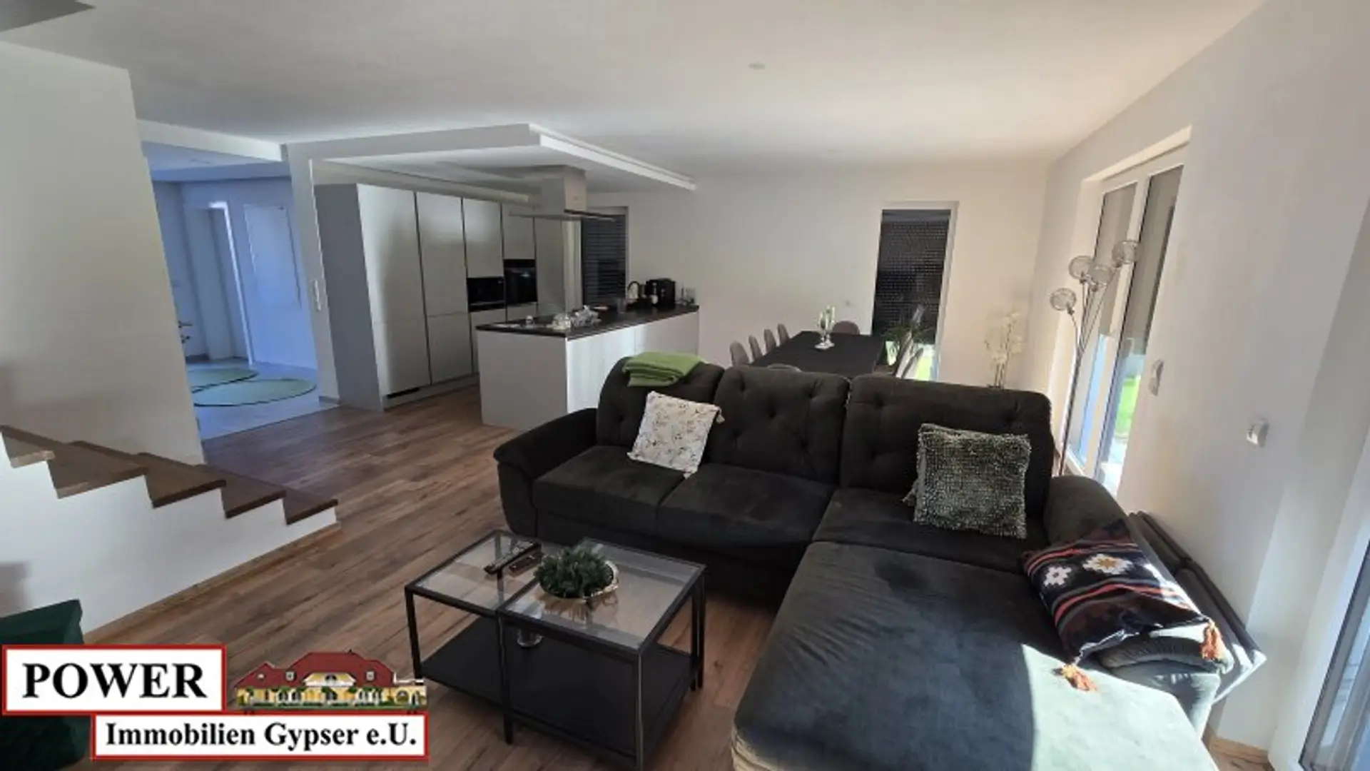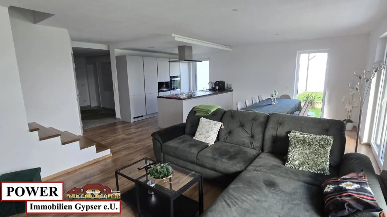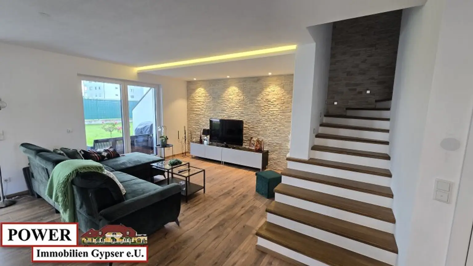Das Erdgeschoß überzeugt durch den offenen Ess-Wohnbereich mit eingerichteter modernen Küche und Ausgang auf die großzügige Terrasse und den netten Gartenbereich.