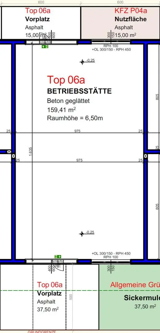 • Betriebshallen und Gewerbeflächen mit 6,5 Meter Höhe