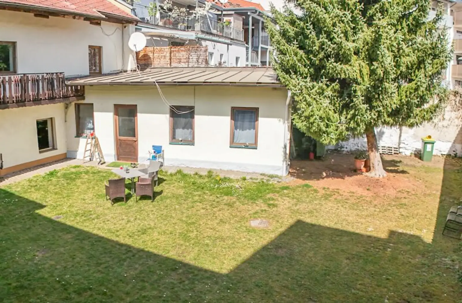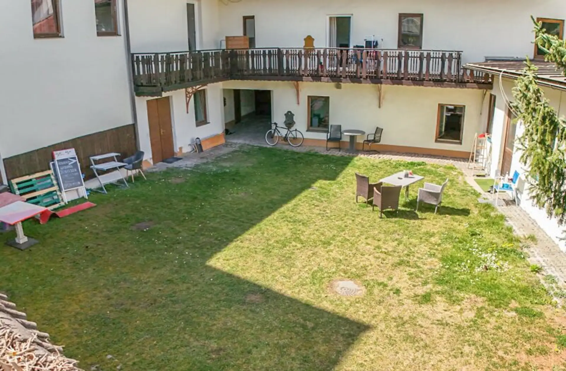 Im Innenhof befindet sich eine Grünfläche (Wiese), die zur allgemeinen Nutzung dient und zur angenehmen Aufenthaltsqualität beiträgt.