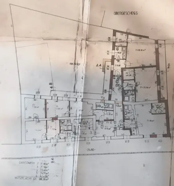 1.OG: - Wohnung 2: 31,70 m² // Wohnung 3: 38,04 m²