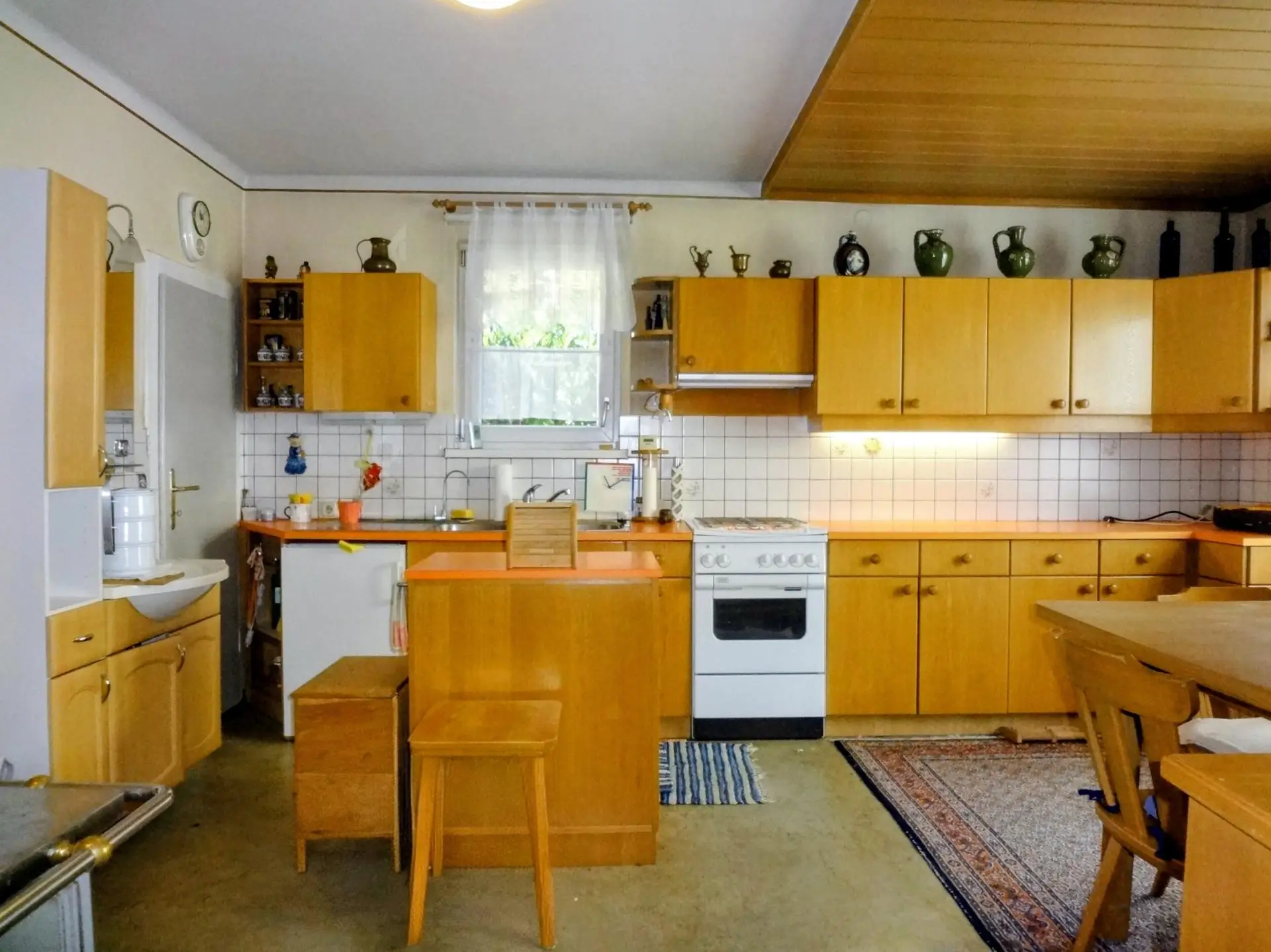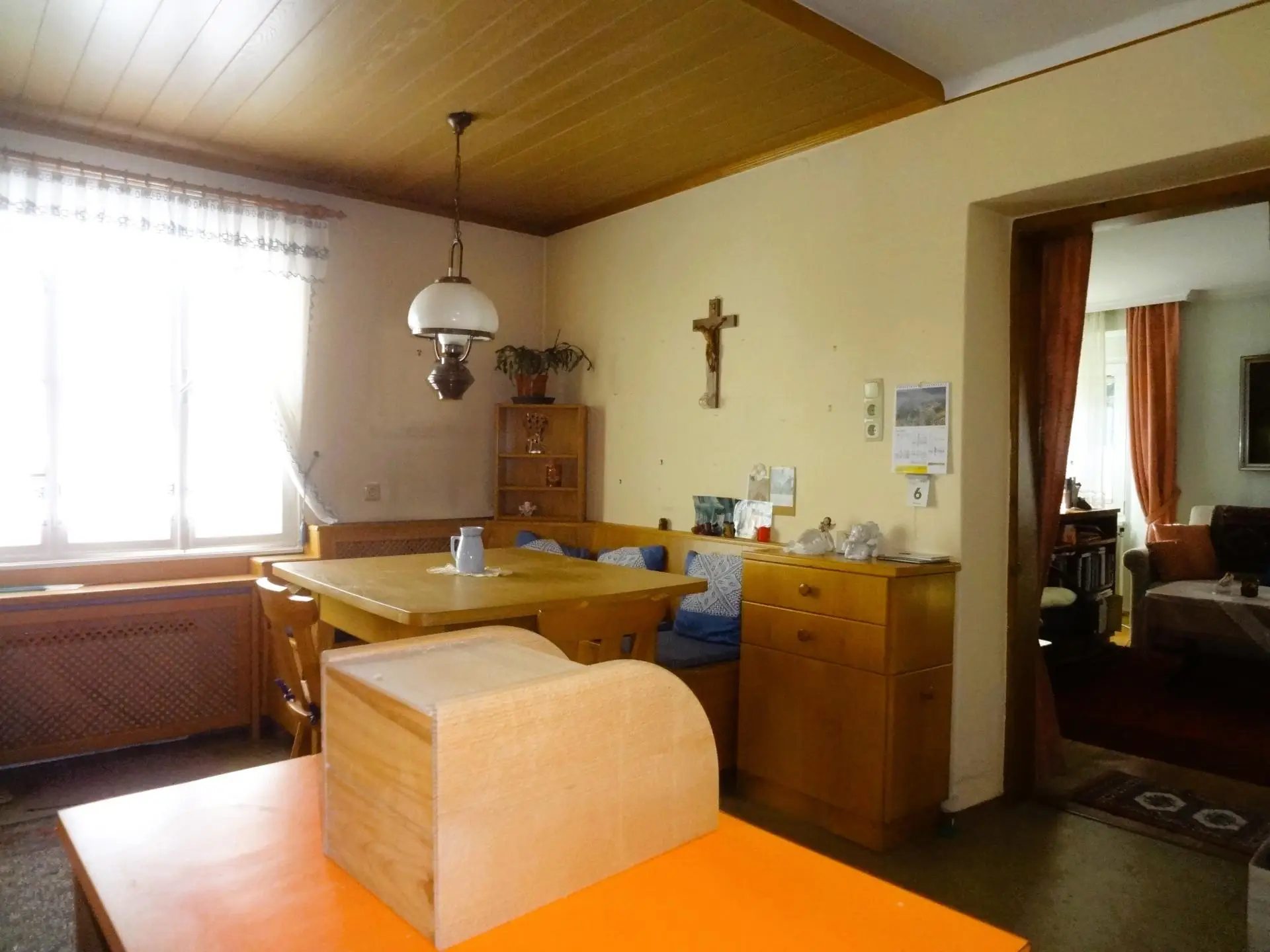 Nettes, älteres Einfamilienhaus mit Wohn-und Schlafräumen im Erdgeschoss und teilausgebauter Mansarde. Wohnküche mit zusätzlich schönem Holzherd nach altem Stil, Pelletszentralheizung, Kaltdach mit Bramacziegel, Glasfaser an der Grundstücksgrenze.