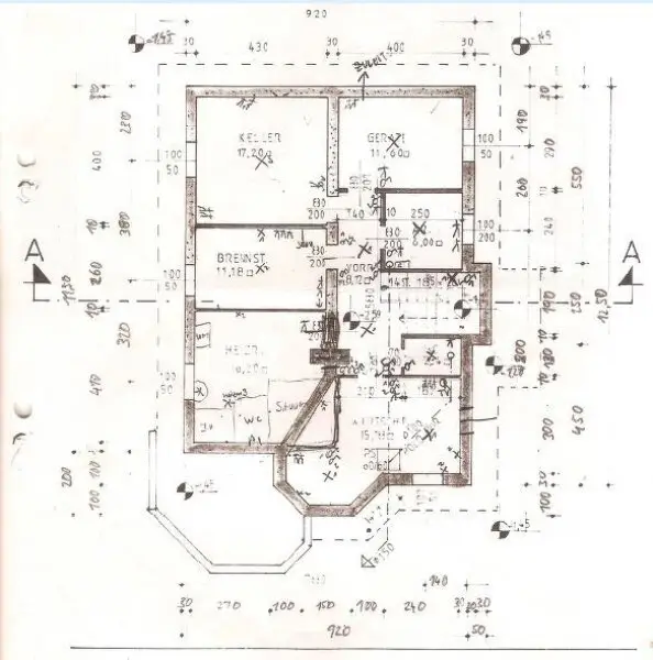 Das Haus ist auf drei Ebenen gegliedert: Kellergeschoss, Erdgeschoss, Oberes Geschoss (Dachgeschoss). Die Zimmer sind alle sehr gut geschnitten und zentral begehbar.