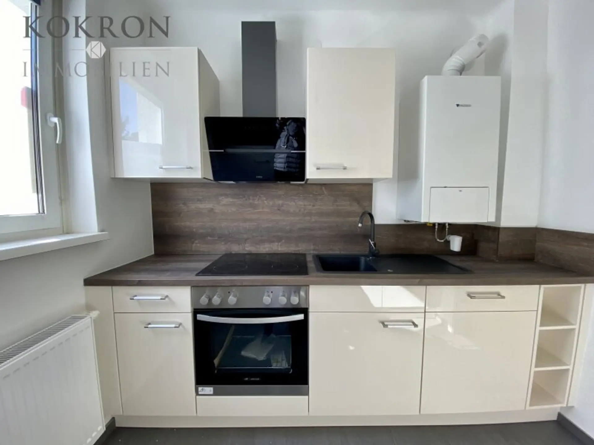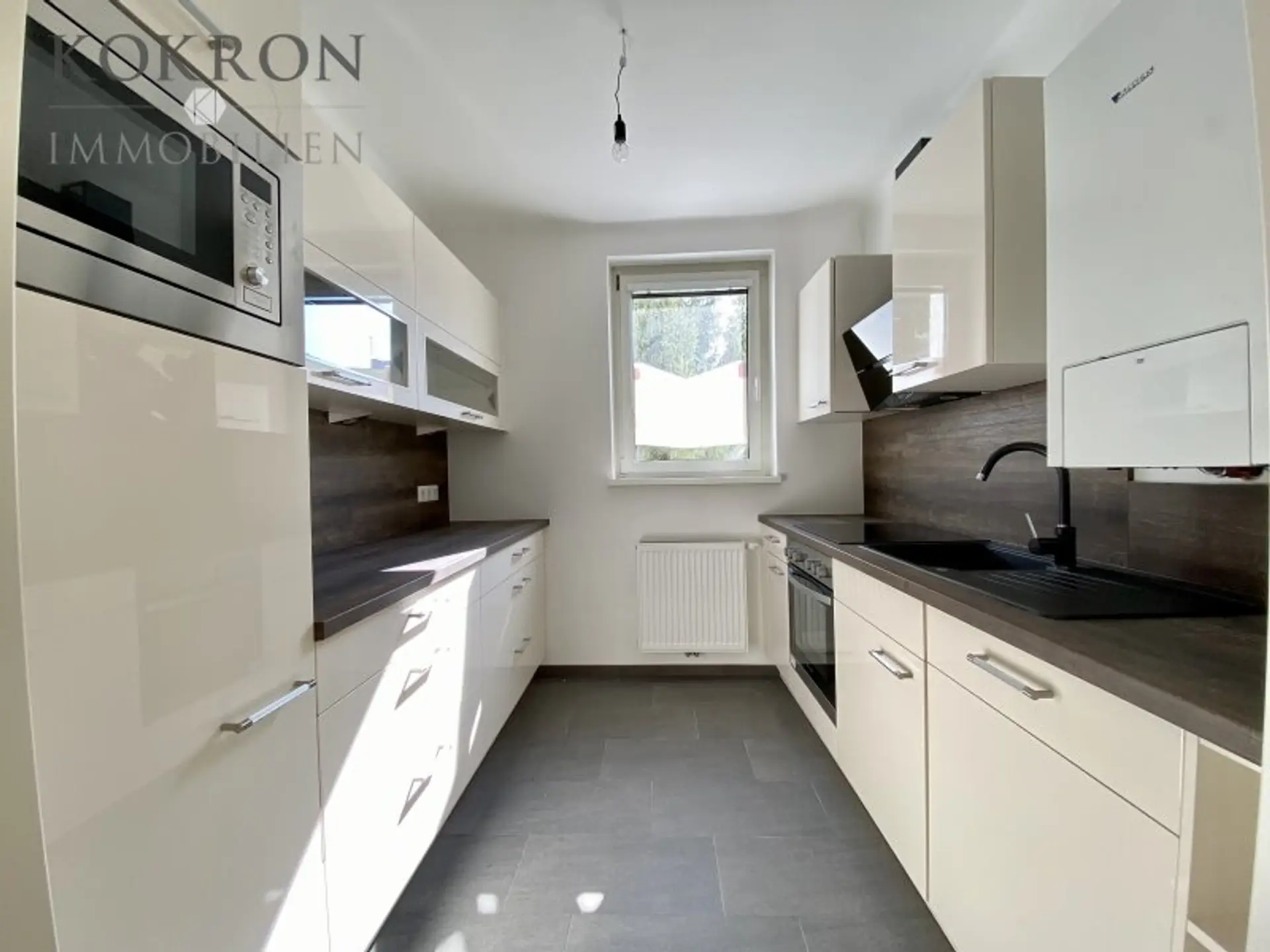 * Vollausgestattete Küche mit allen Geräten und Fenster in den Hof