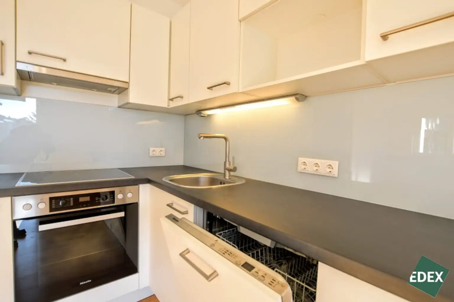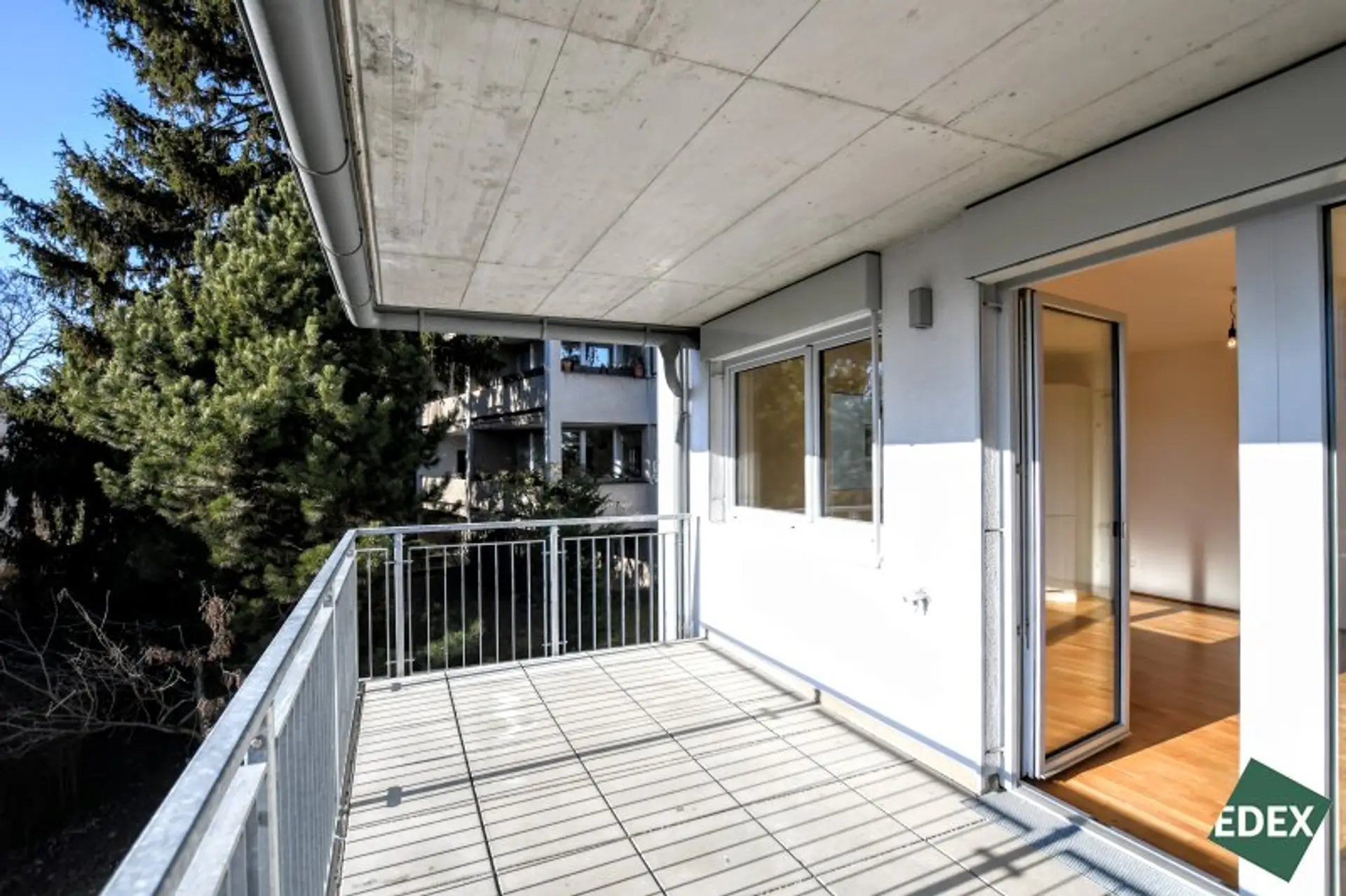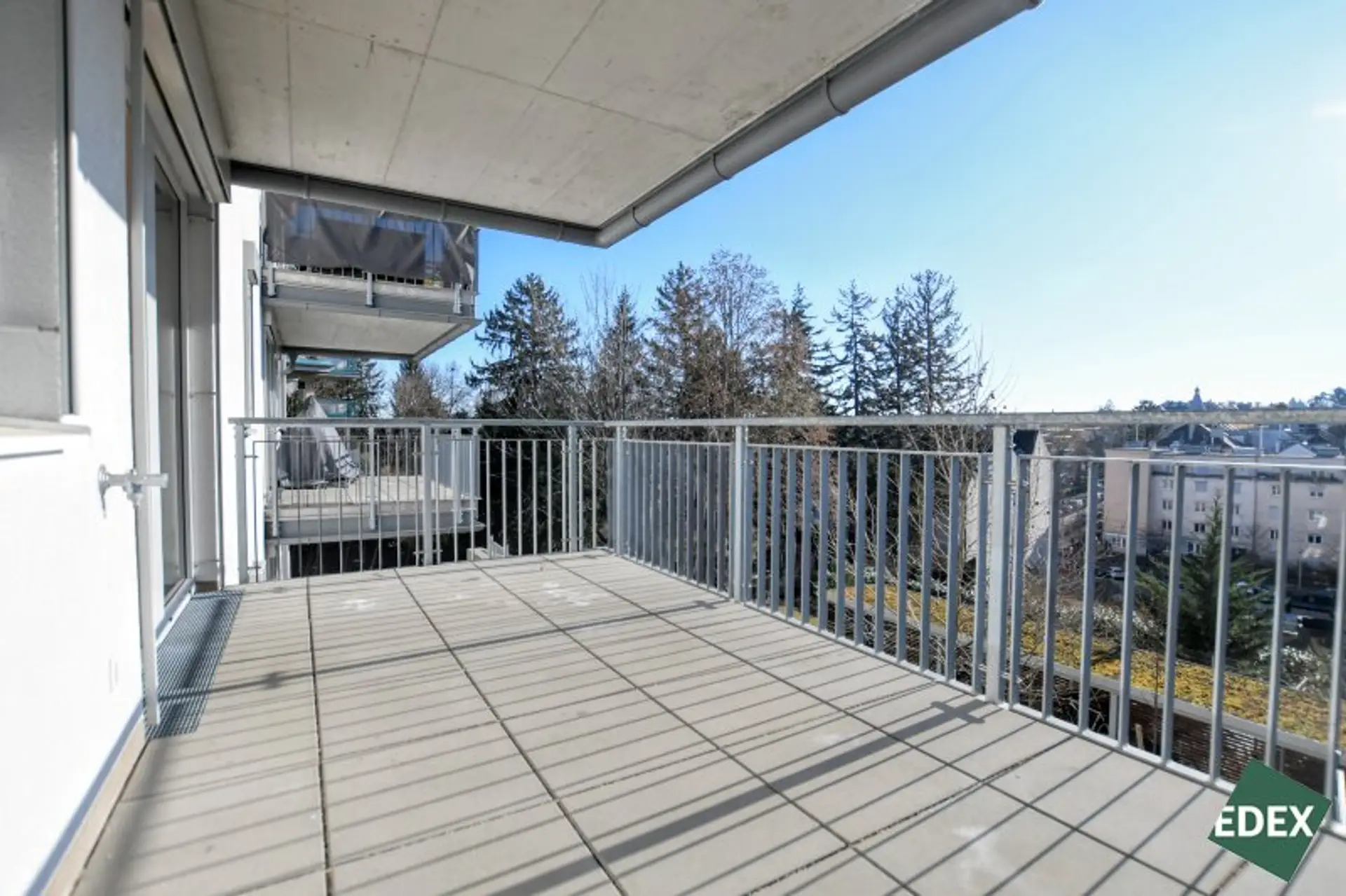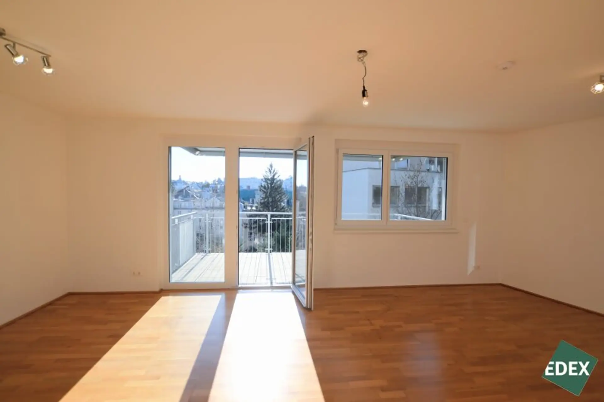 Das Herzstück der Wohnung bildet das lichtdurchflutete Wohnzimmer mit offener, zeitloser Küche samt Markengeräten. Hier verschmelzen Kochen, Essen und Wohnen zu einem großzügigen, einladenden Lebensbereich. Ein echtes Highlight ist der direkte Zugang auf den rund 12 m² großen Balkon – sonnig und südlich ausgerichtet, mit Weitblick und einem eigenen Wasseranschluss, ideal für Urban Gardening oder entspannte Stunden im Freien.