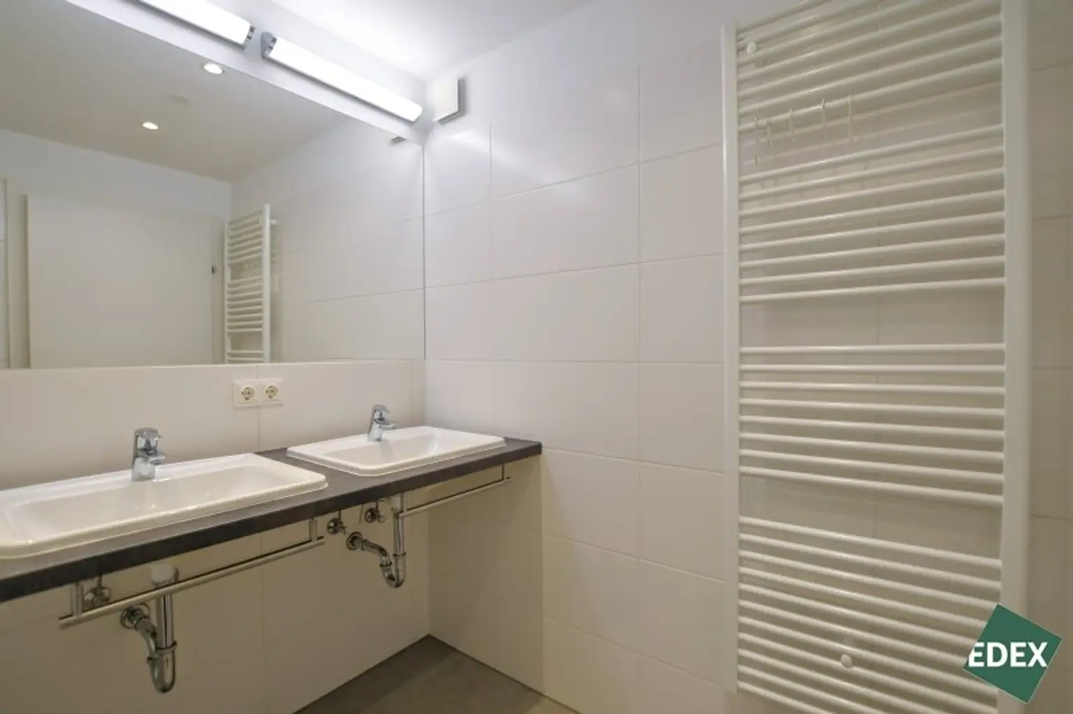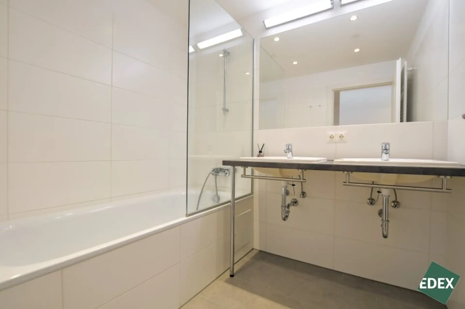 Badezimmer mit Wanne und Doppelwaschbecken