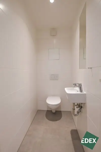 Diese elegant ausgestattete 3-Zimmer-Neubauwohnung im 3. Obergeschoß vereint modernes Wohngefühl mit durchdachter Raumaufteilung und stilvoller Ausstattung. Bereits beim Betreten empfängt Sie ein einladender Vorraum, der Sie zentral in alle Räume der Wohnung führt. Gleich links befindet sich das separate WC – mit Handwaschbecken ausgestattet.