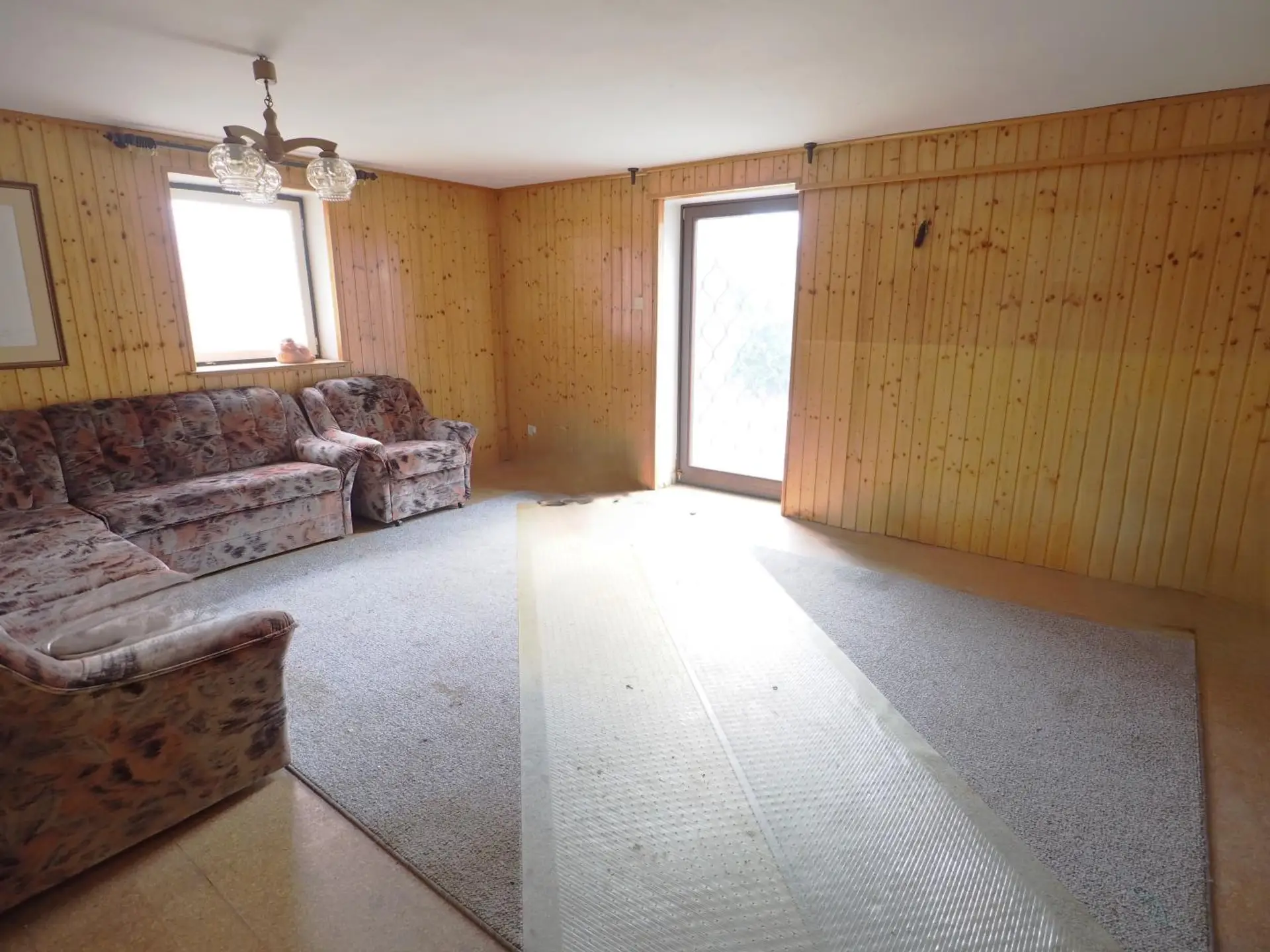ZUSTAND UND AUSSTATTUNG: Das Haus hat ein dem Alter entsprechenden Modernisierungs- und Renovierungsbedarf. Das Haus ist teilweise möbliert und wird auf Wunsch selbstverständlich komplett geräumt übergeben. BÖDEN: Parkett, Fliesen, Teppich, Estrich, etc. FENSTER: Holzfenster (2-fach verglast) aus der Erbauungszeit. HEIZUNG: Ölheizung (2000) und Kachelofen (ca. 2000). DACH: Eternit-Wellblechdach.