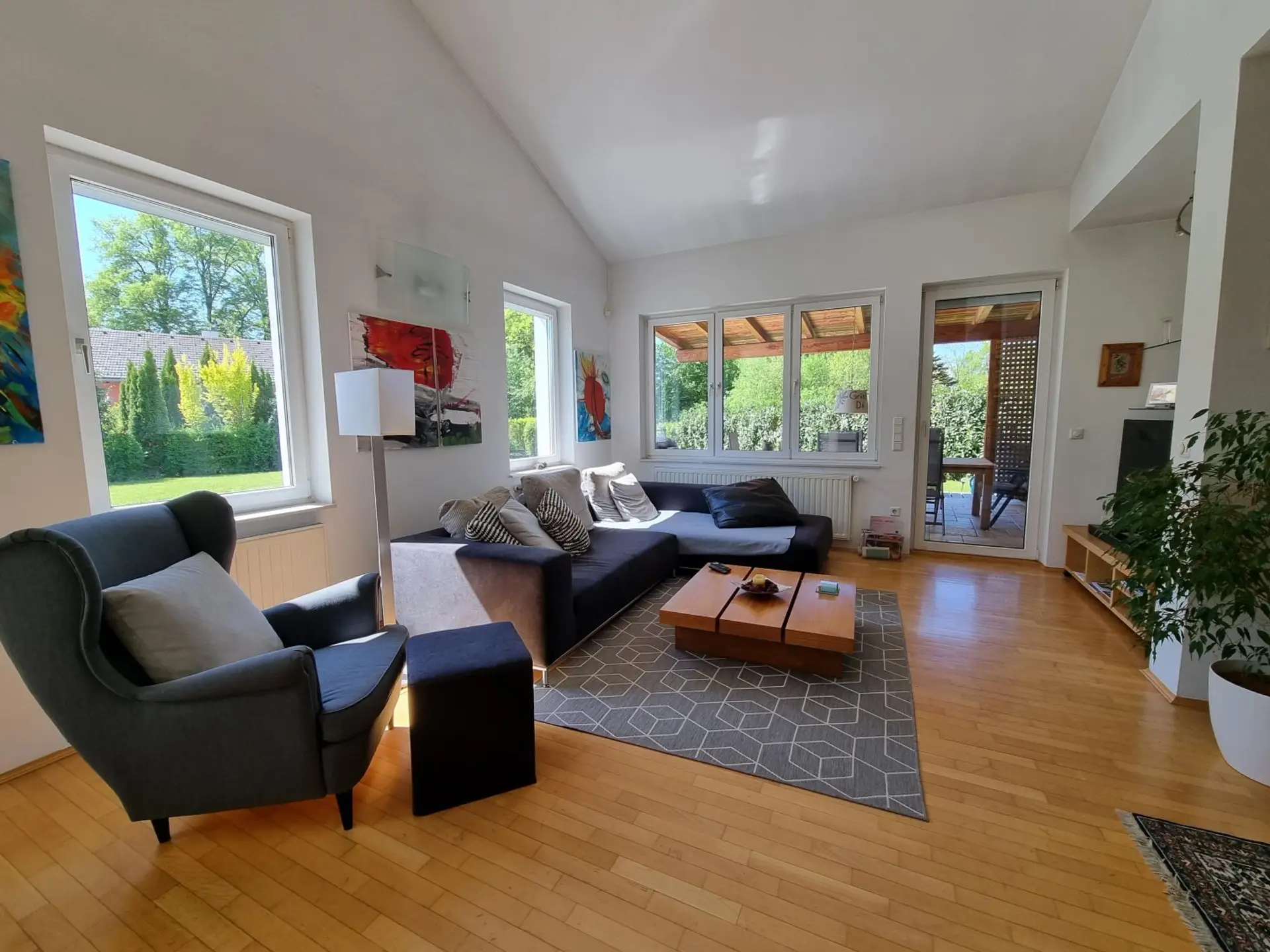 - Wohnzimmer: beeindruckende Raumhöhe über zwei Geschosse bis unters Dach