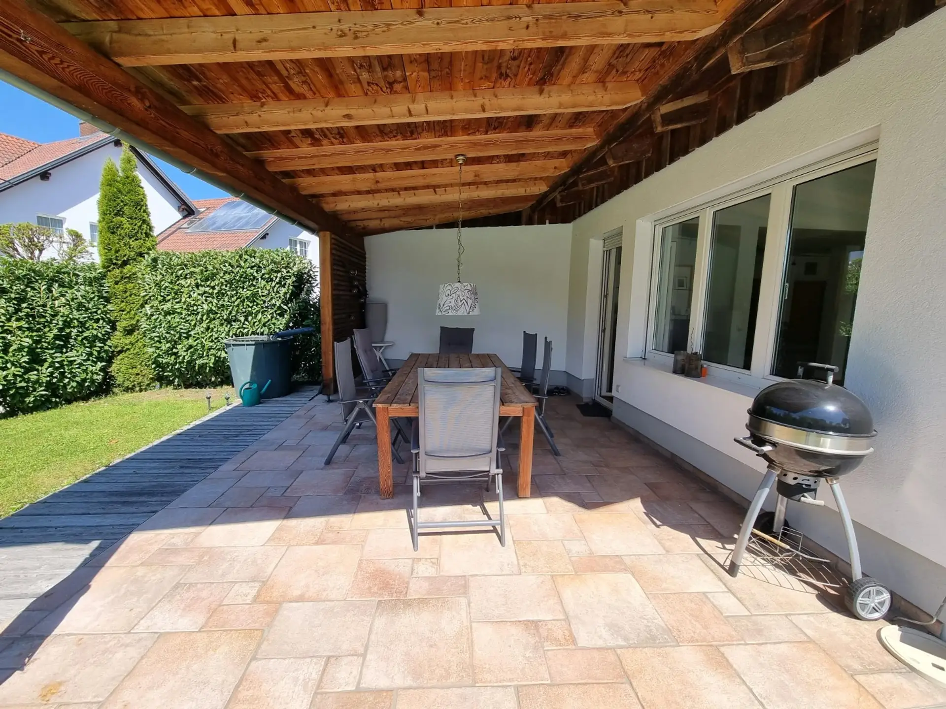 - Zugang zur sehr großen, überdachten Terrasse mit Blick in den Garten