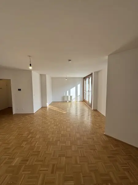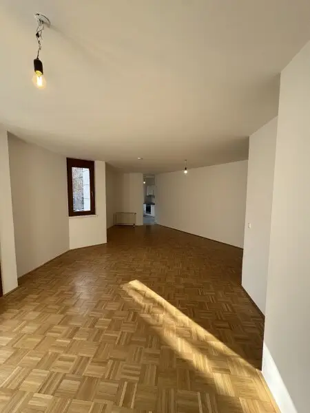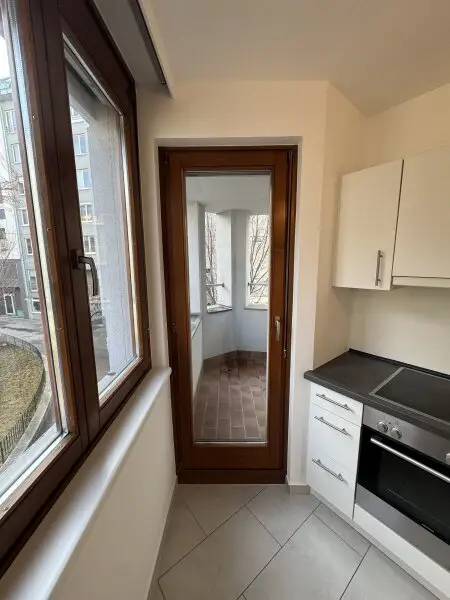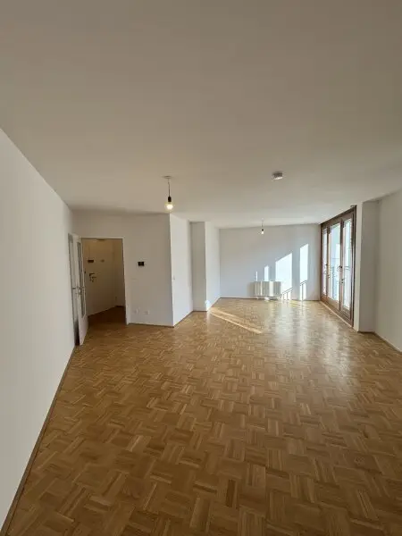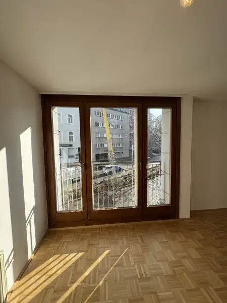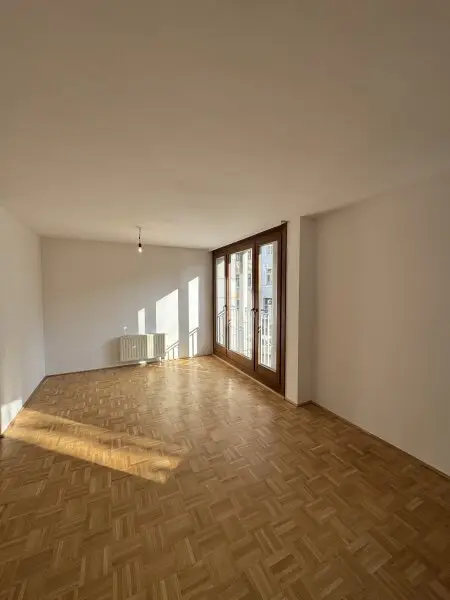 Dank der großen, bodentief wirkenden Fensterflächen ist die Wohnung den ganzen Tag über von Licht durchflutet. Die Ausrichtung sorgt vor allem zur Mittags- und Nachmittagssonne für eine warme, helle Wohnatmosphäre. Der Wohnraum bietet viel Platz für Wohnen, Schlafen und Arbeiten. Ergänzt wird das Raumangebot durch einen praktischen Abstellraum sowie eine Einbauküche, die sich harmonisch in das Gesamtbild einfügt.