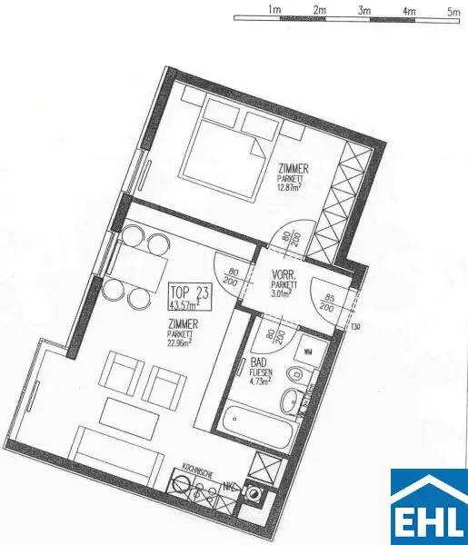 * Alle Wohnräume sind mit Parkettboden ausgestattet und die Nassräume sind verfliest