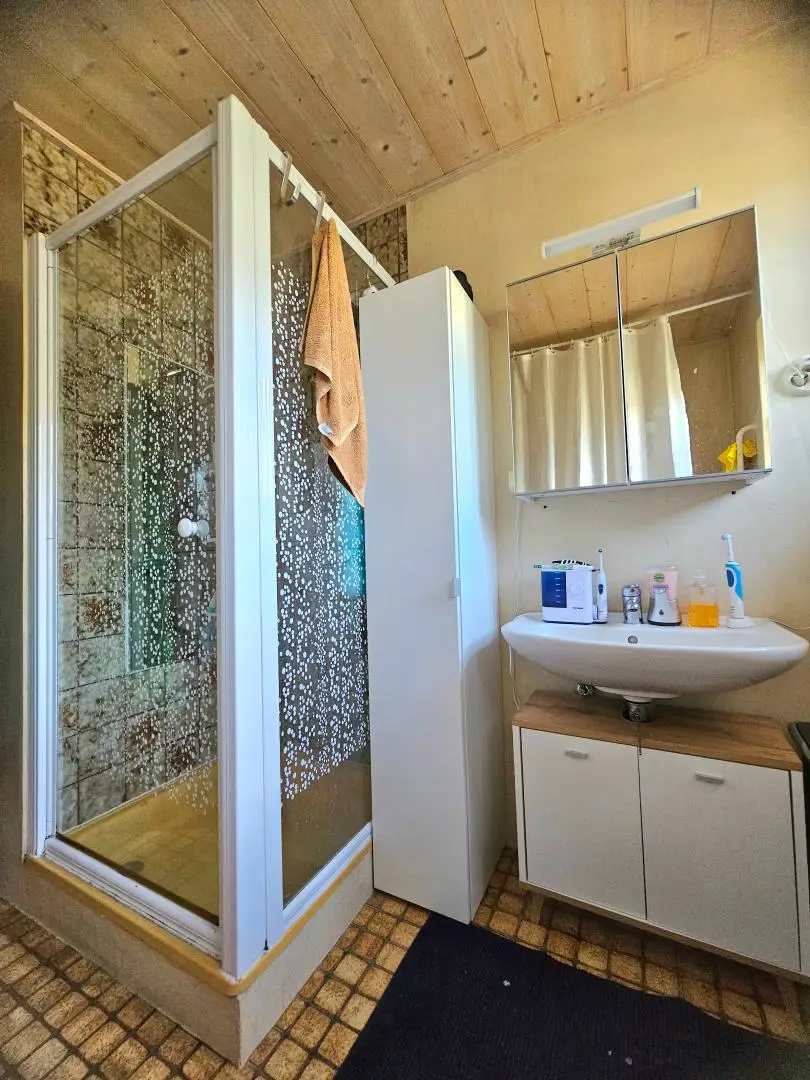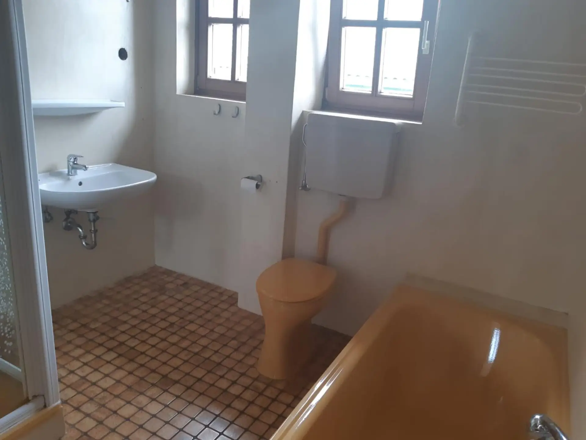 - 1 Badezimmer mit Badewanne und Waschmaschinenanschluss