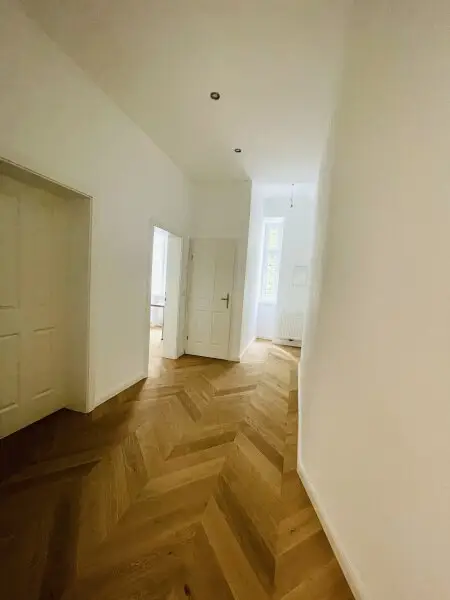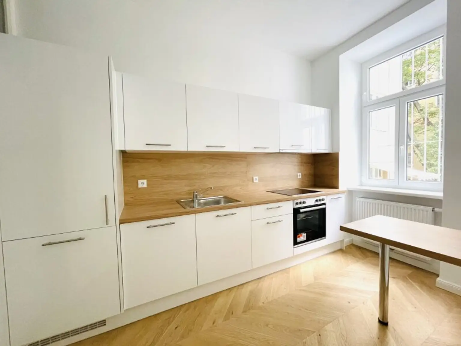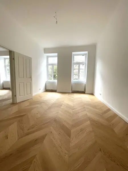 Diese grosszügige und lichtdurchflutete 2 Zimmer Wohnung befindet sich in einem schön sanierten Altbau in der Klosterneuburger Straße in 1200 Wien, im 1. Stock. Die Wohnung besticht durch die imposante Raumhöhe eines typischen Altbaus und die liebevolle Sanierung dieser schönen Wohnung unter Erhaltung schöner Stilelemente. Es wurde in allen Wohnräumen ein hochwertiger Fischgrät-Eicheparkettboden verlegt, die das Altbauflair perfektionieren. Alle Räumlichkeiten verfügen über große Fenster, die für für Helligkeit und ein tolles Raumklima sorgen. Sie betreten die Wohnung durch das geräumige Vorzimmer und gelangen anschließend rechter Hand direkt in die neue Küche, die mit allen Geräten ausgestattet ist und in den begrünten Innenhof ausgerichtet ist. Vom Vorzimmer gerade aus betreten Sie das große Wohnzimmer, von diesem aus Sie ein weiteres Zimmer begehen können, das sich optimal als Schlafzimmer eignet.