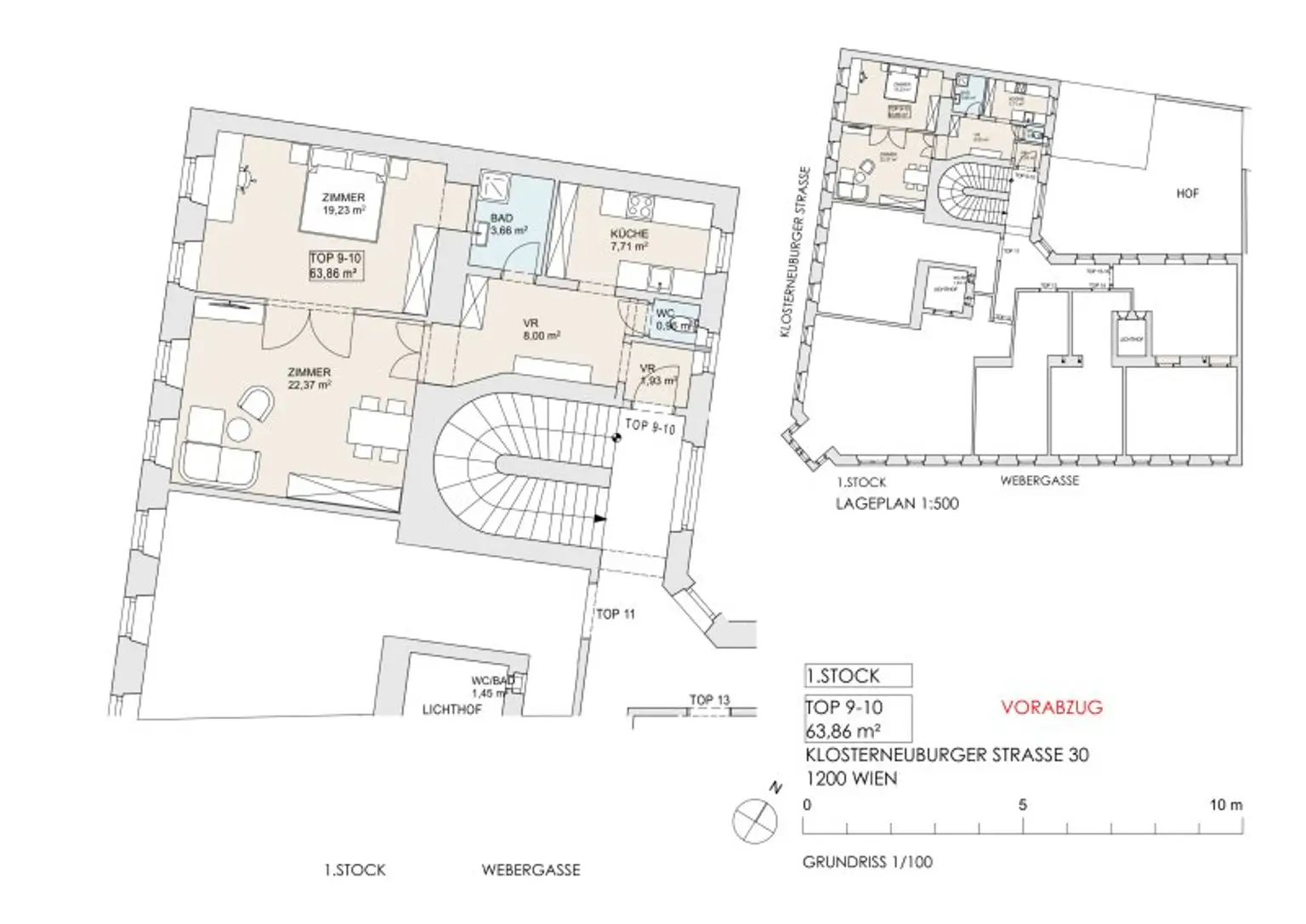 Die Wohnung liegt in der Klosterneuburger Straße, im 20. Bezirk. In der Nähe des Wallensteinplatzes und dem Hannovermarkt. Die Geschäfte des täglichen Bedarfs, sowie Apotheken und Ärzte eisen fussläufig erreichbar. Auch diverse Cafés und Restaurants befinden sich in unmittelbarer Umgebung. Die öffentliche Verkehrsmittel, wie U-Bahn, Bus und Straßenbahn sind ebenfalls in wenigen Schritten fußläufig zu erreichen.