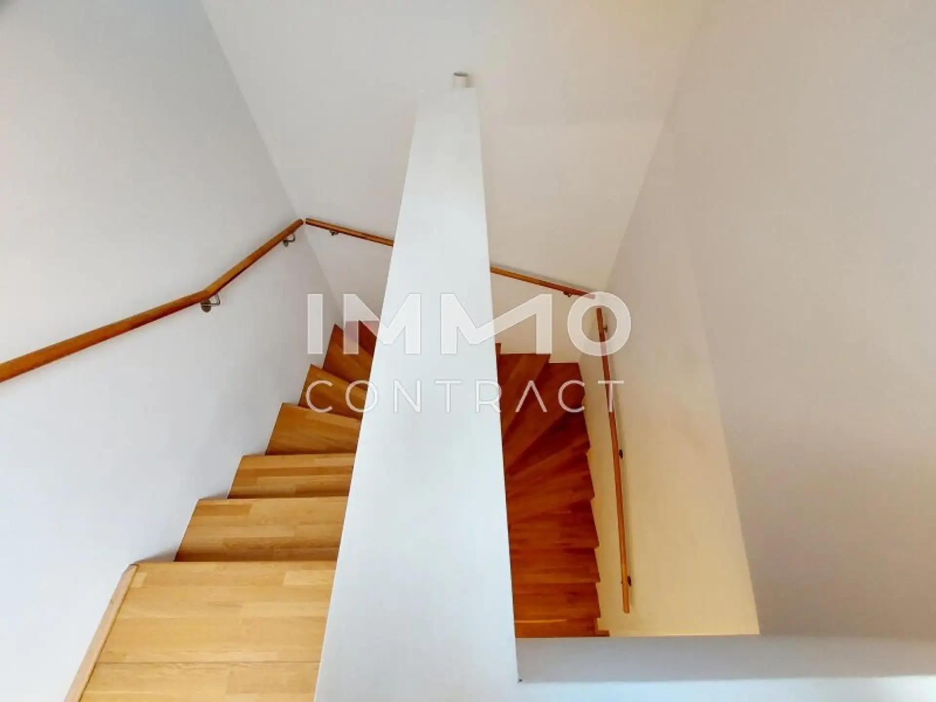 In der ersten Ebene befindet sich der Vorraum mit einem WC und das Wohn-Esszimmer inkl. Küche. In der oberen Ebene sind die beiden Schlafzimmer, eine Diele und das Badezimmer mit einem weiteren WC platziert.