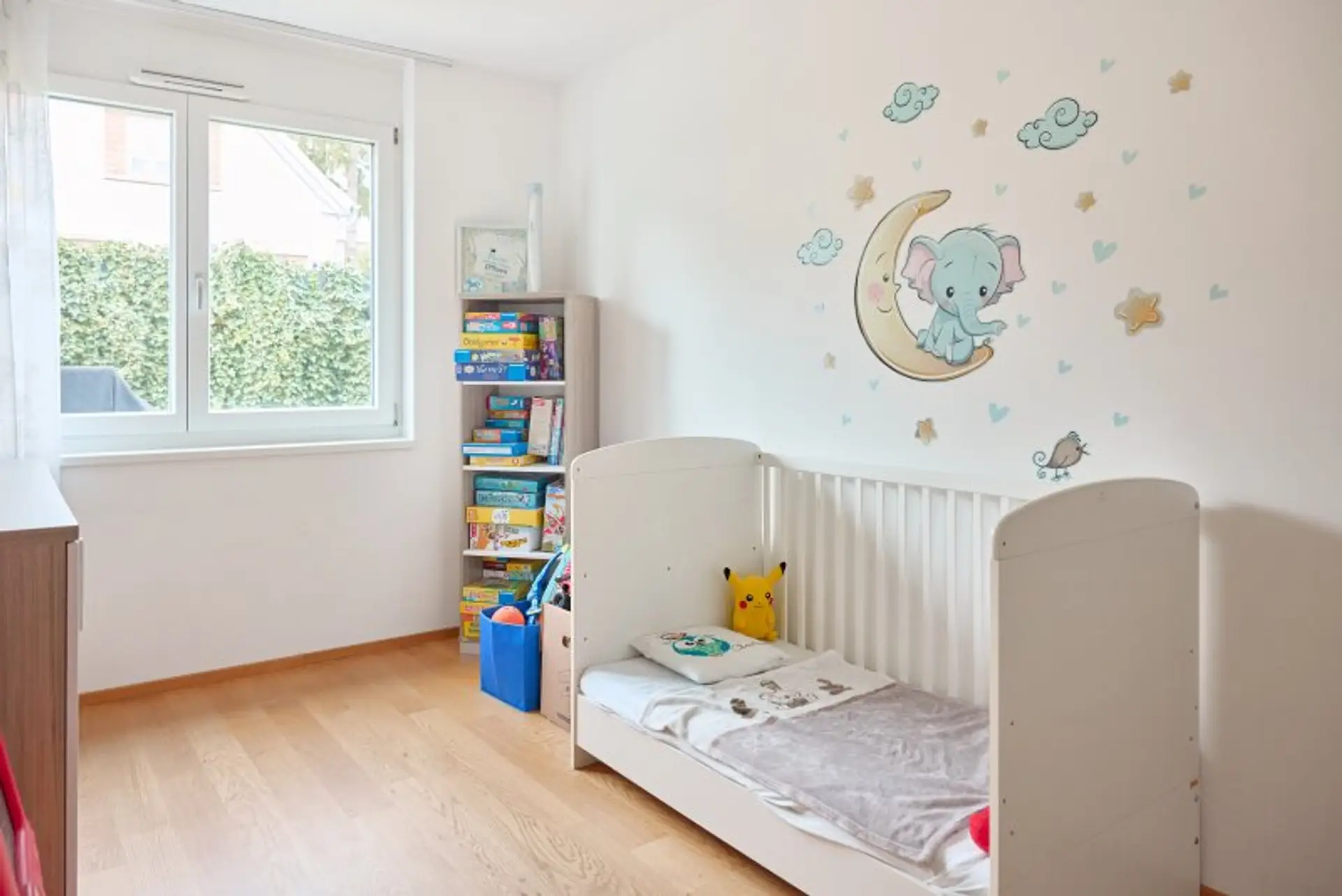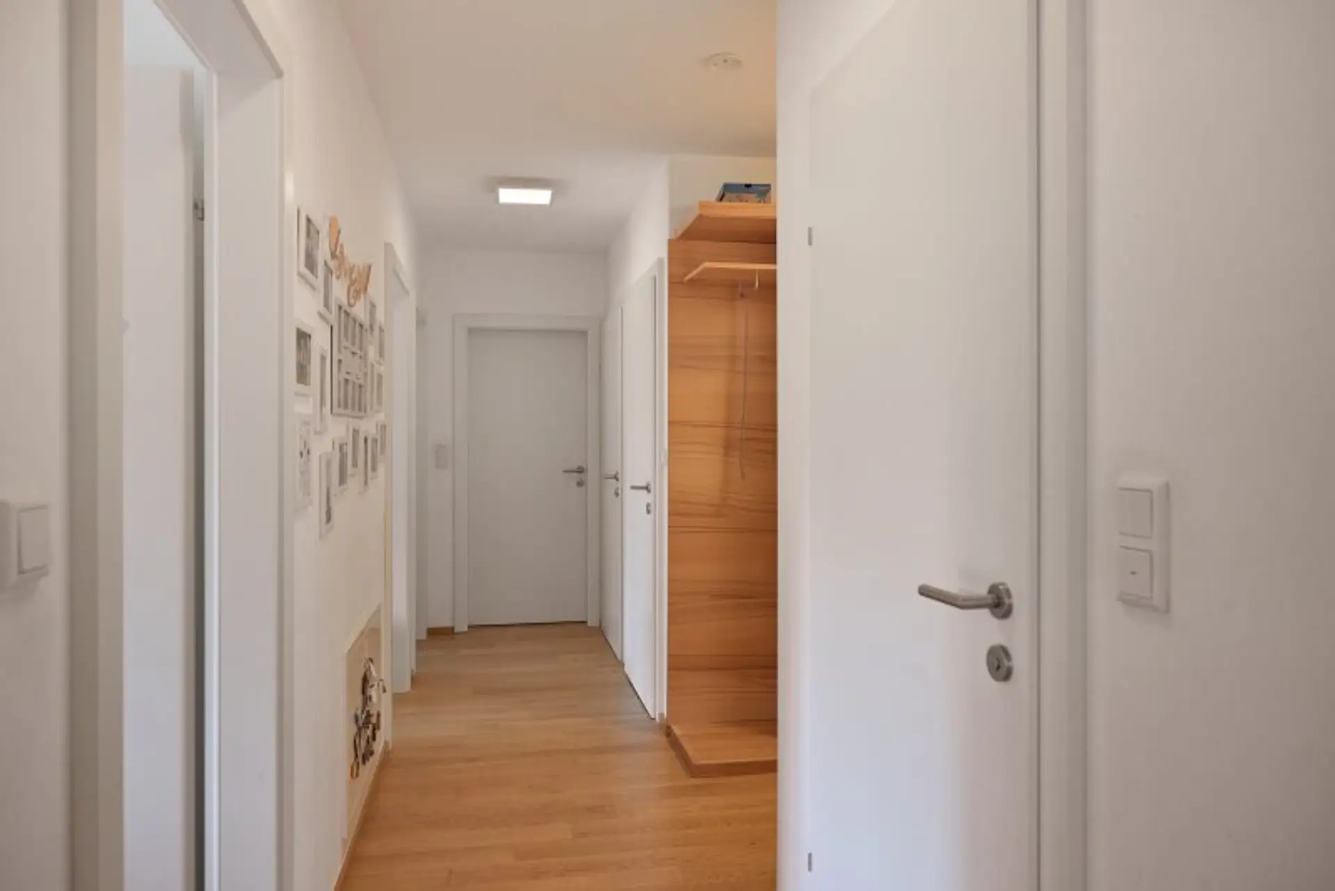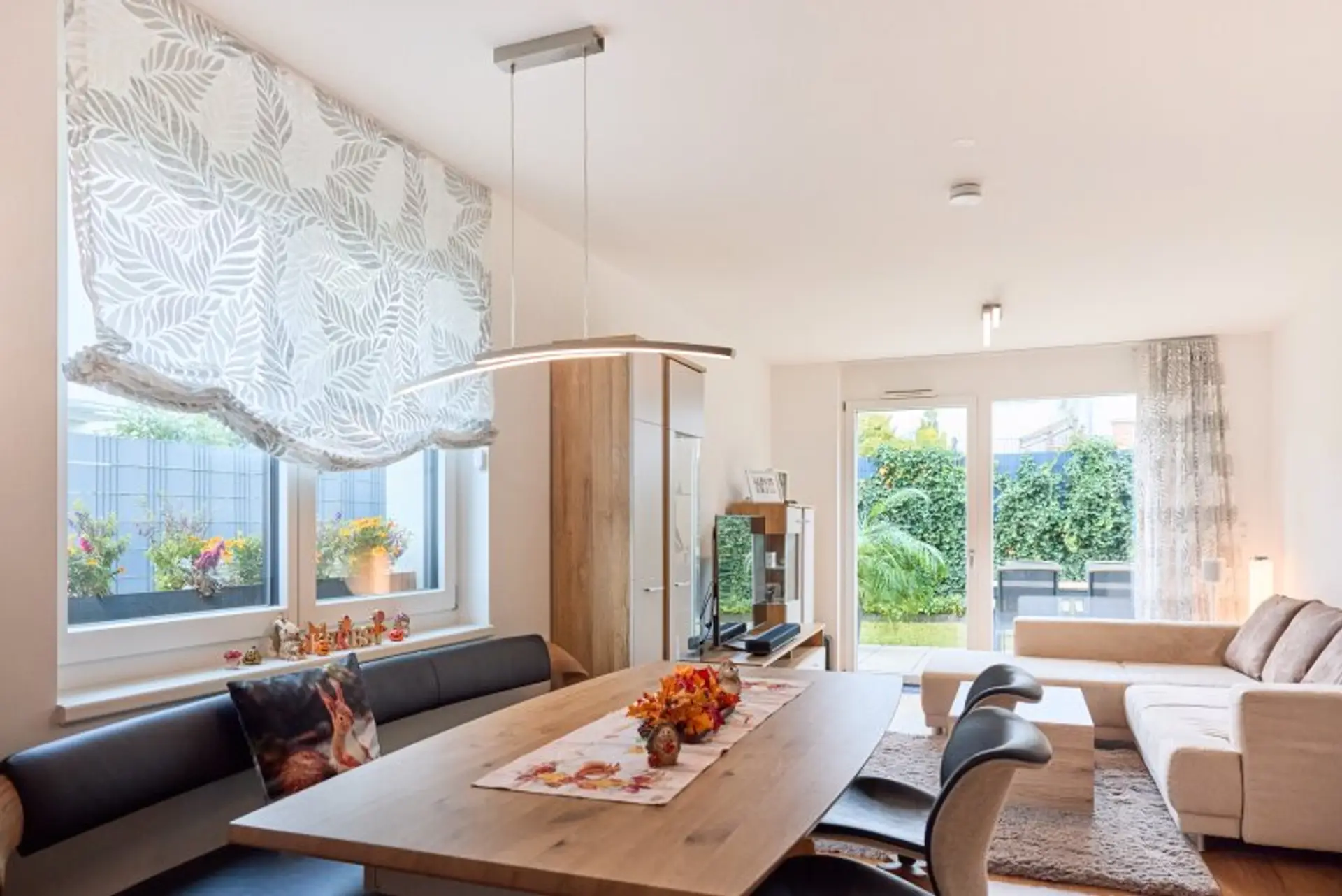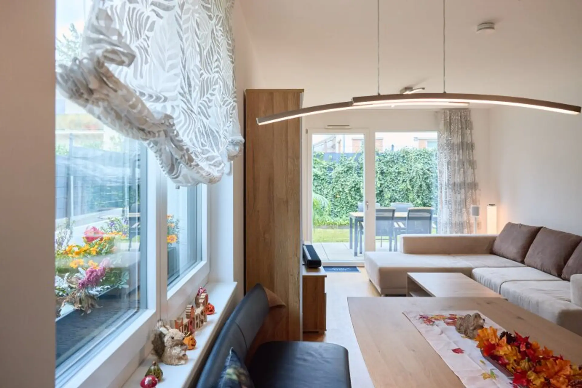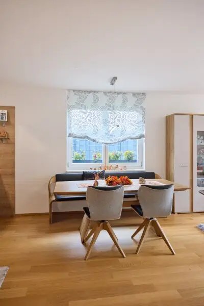 Geradeaus bzw. rechts befinden sich die drei Schlafzimmer. Sowohl die Wohnküche als auch alle Schlafzimmer bieten einen Ausblick in den eigenen Garten samt Terrasse.