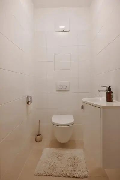Das Badezimmer bietet eine Badewanne sowie (in die Möbel integriert) Anschlüsse für eine Waschmaschine. Perfekt für Familien ist das zweite Badezimmer mit Dusche und Toilette sowie die zweite getrennte Toilette geeignet.