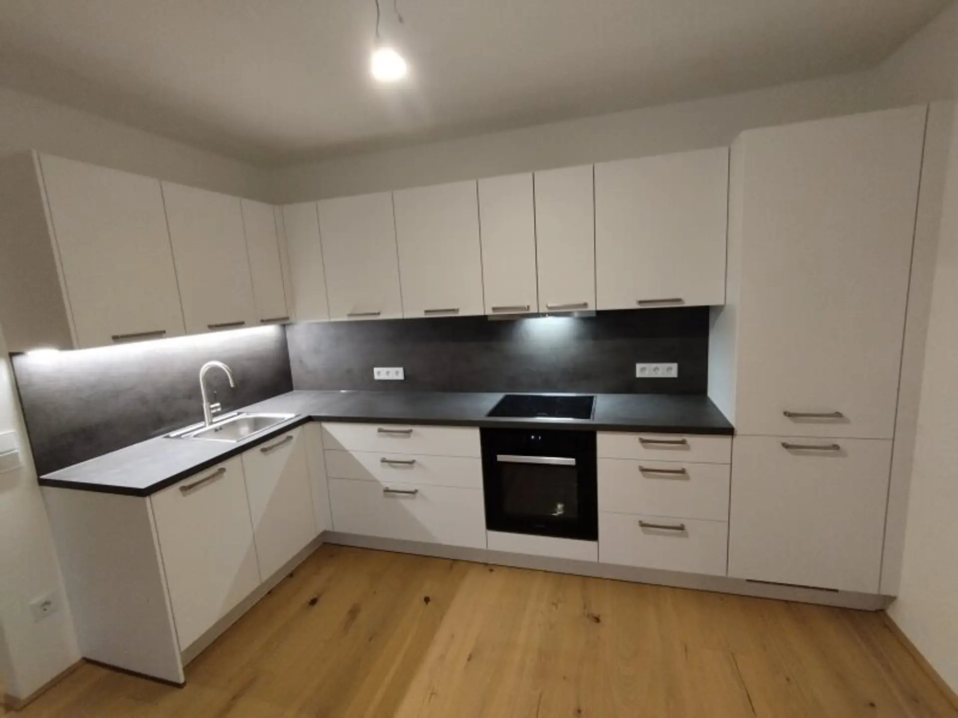 Die vollmöblierte Küche besteht aus einem Kochfeld, einem Backrohr, einem Waschbecken, einem Geschirrspüler, einem Kühlschrank samt einem Gefrierfach und mehreren Regalen. Die Bilder der Küche sehen Sie ebenso im Exposé.