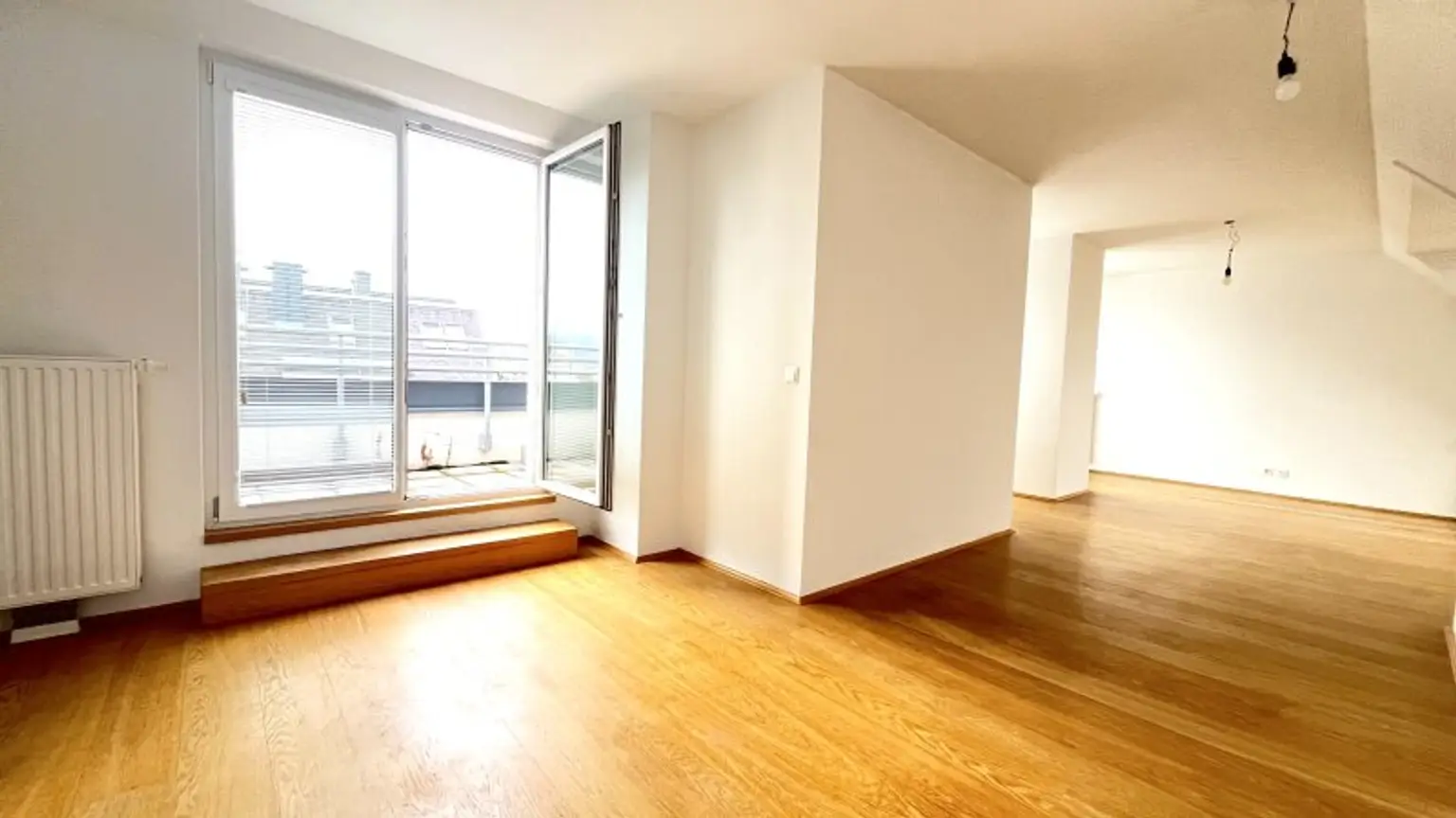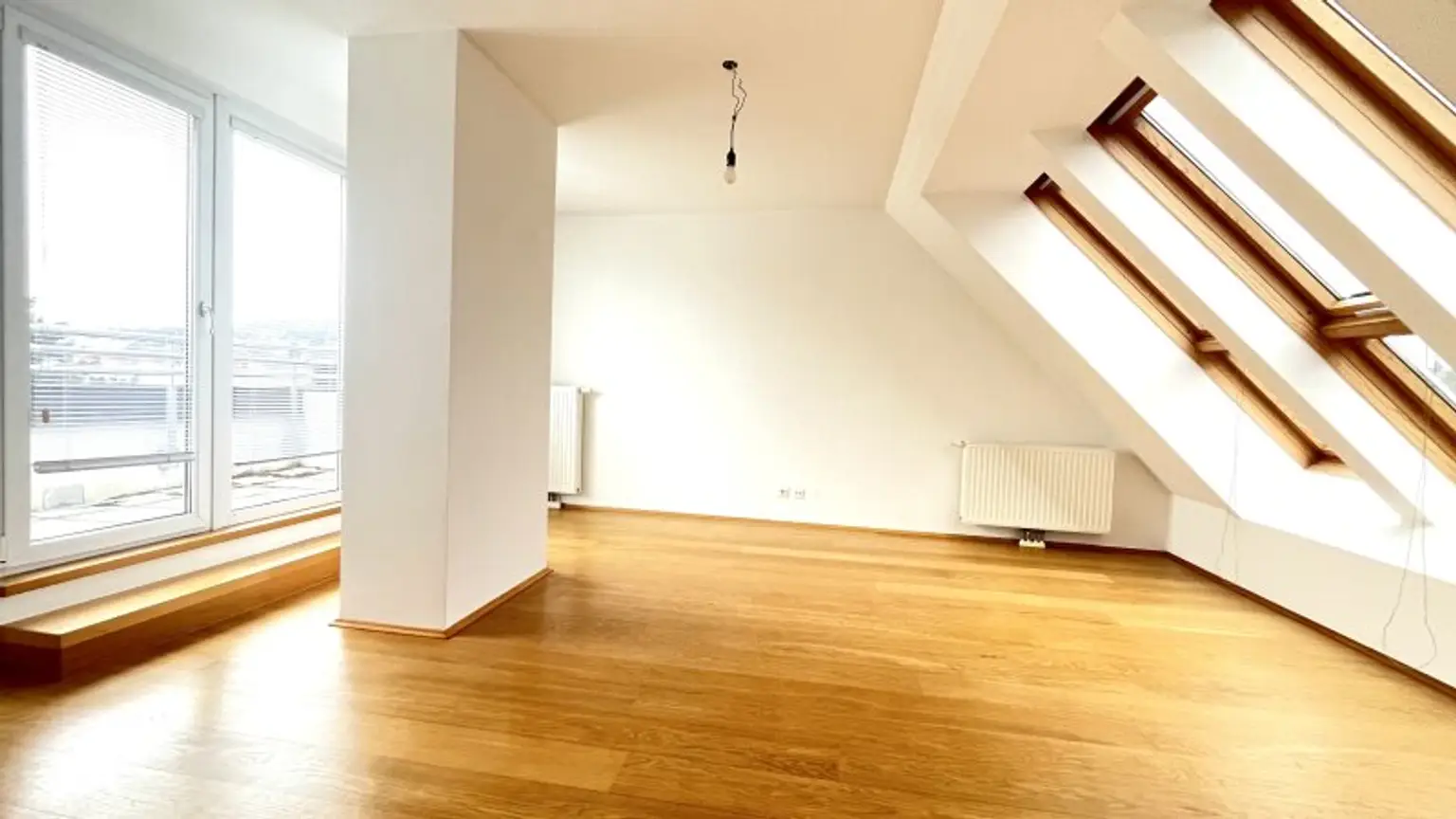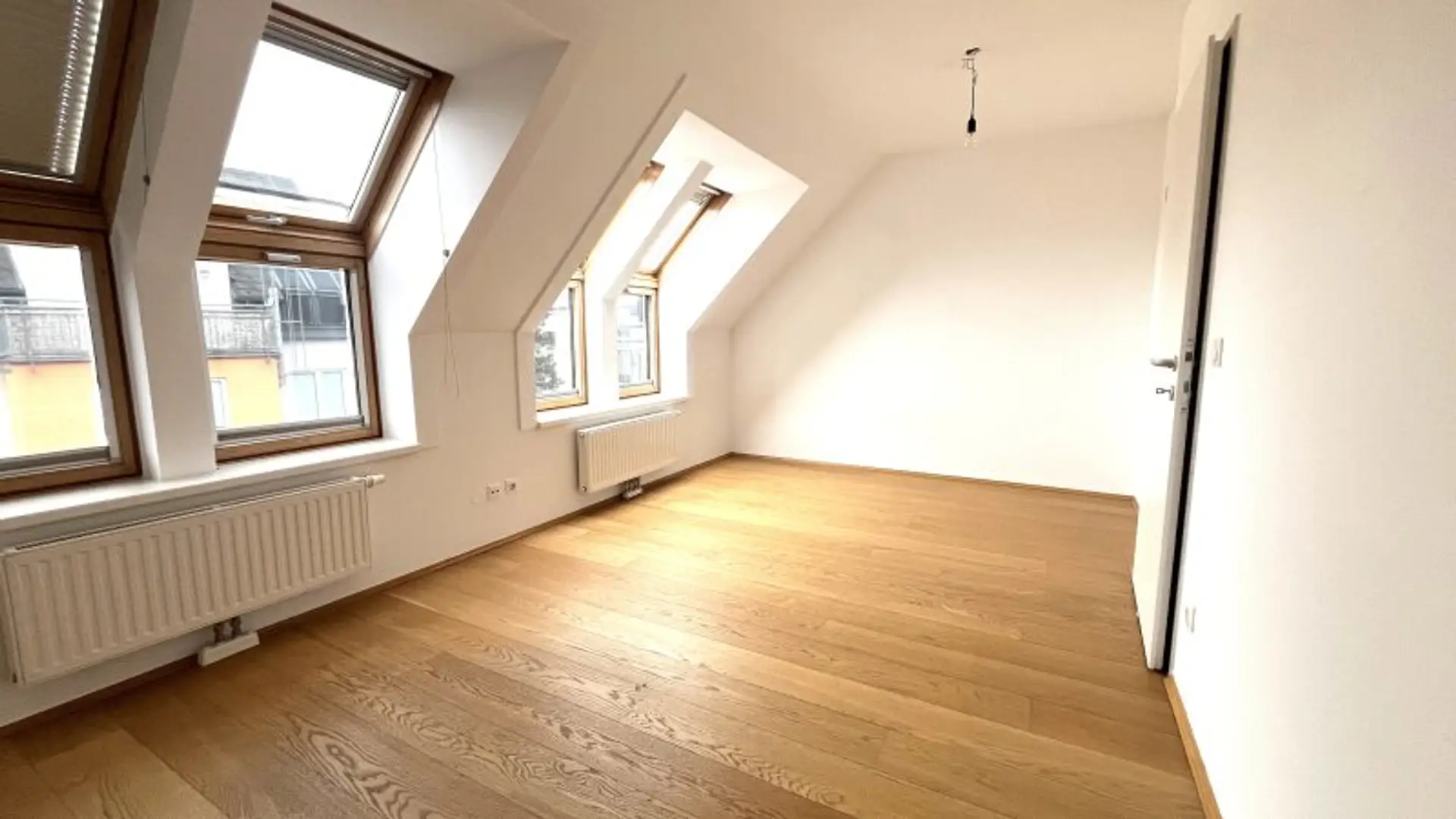 Der erste Schlafraum wirkt aufgrund der vielen Dach-Fenster sehr außergewöhnlich und bietet dank einer Größe von fast 17 m² genug Möglichkeiten, um neben einem geräumigen Doppelbett auch einen großzügigen Kleiderschrank zu platzieren. Die kleine aber feine Terrasse ist perfekt, um nach einer erholsamen Nacht bei frischer Luft in den Tag zu starten.