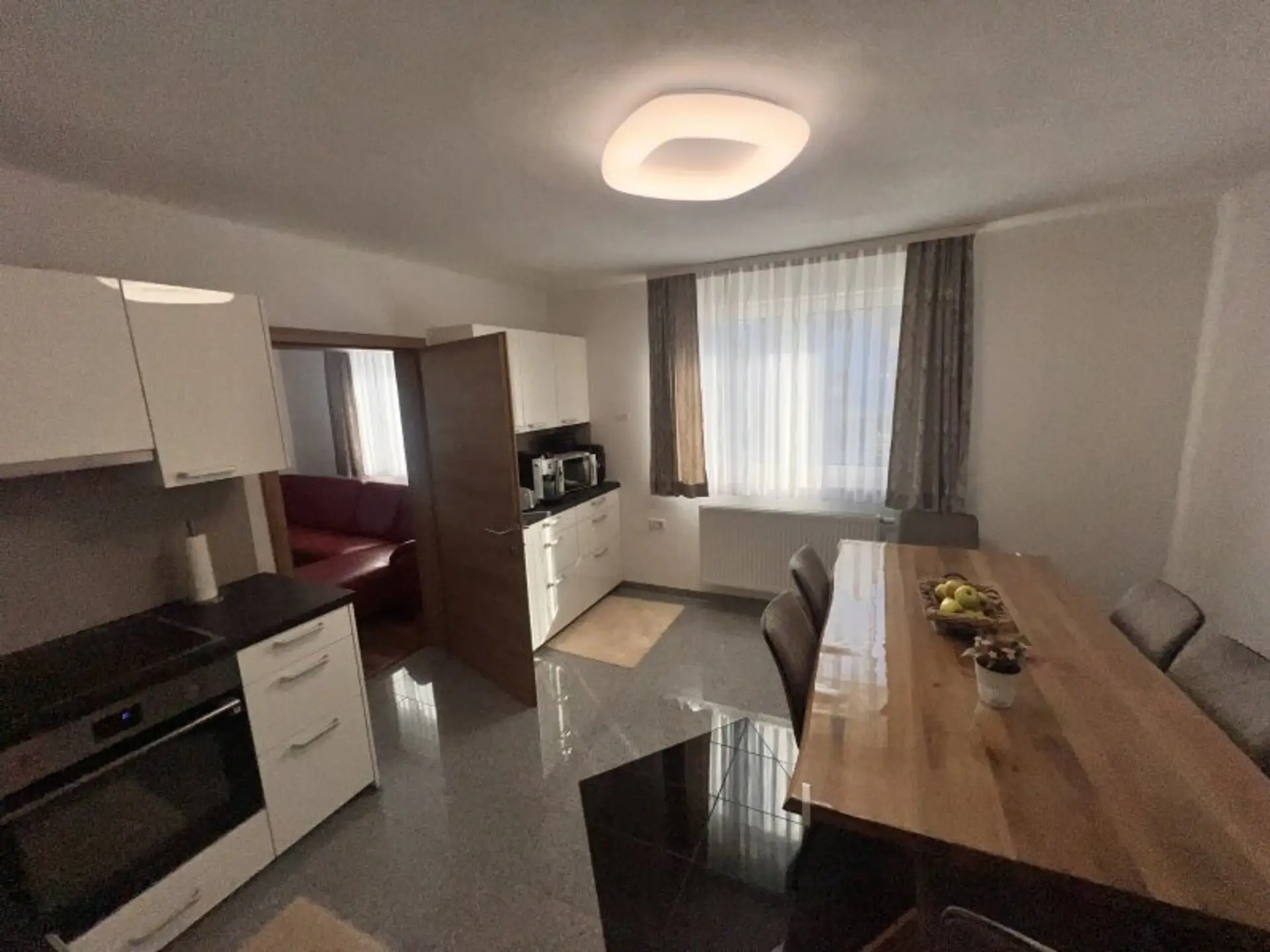 Der Wohnbereich ist gemütlich und einladend. Die moderne Küche mit integriertem Essbereich bietet ideale Bedingungen zum Kochen, Genießen und Zusammensein.