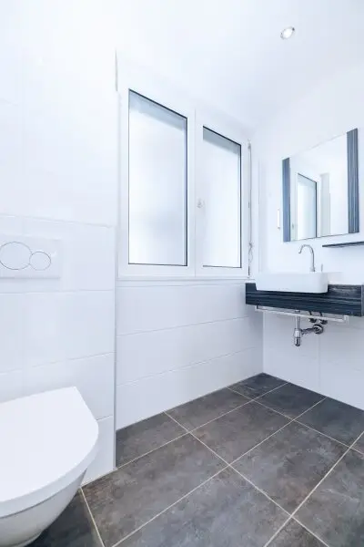Das Badezimmer besticht durch zeitgemäßes Design und eine hochwertige Ausstattung. Hier können Sie in entspannter Atmosphäre den Tag beginnen oder ihn ausklingen lassen.