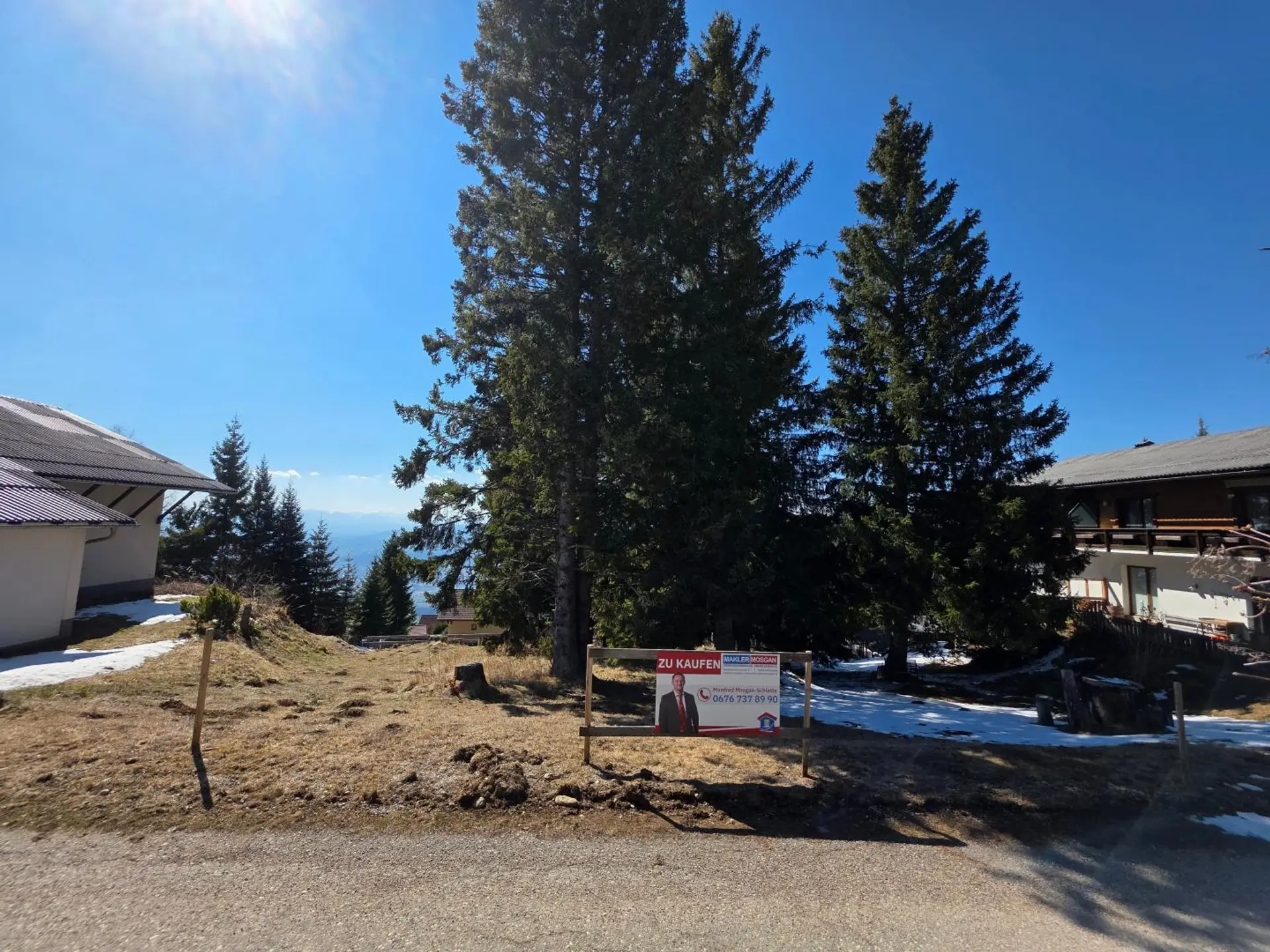 Der Bauplatz verfügt über 978 m² Gesamtfläche und einen freien Blick auf das Lavanttal und die Karawanken.