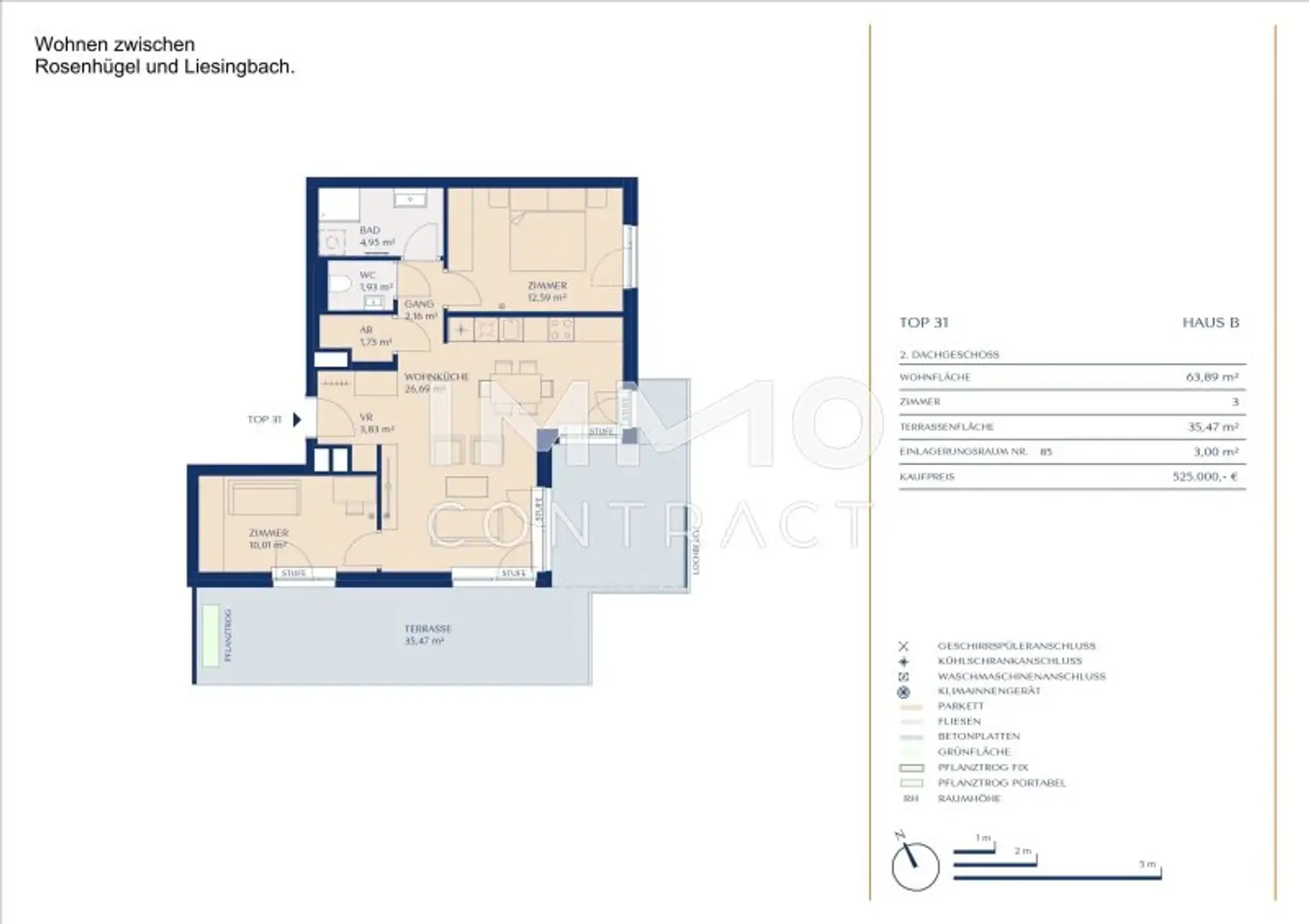 Ausstattung: Barrierefrei Boden Fahrstuhl Wohnküche / offene Küche Bad Kabel/Satelliten-TV Klimaanlage Tiefgarage Parkplatz Fahrradraum Abstellraum Fußbodenheizung Terrasse