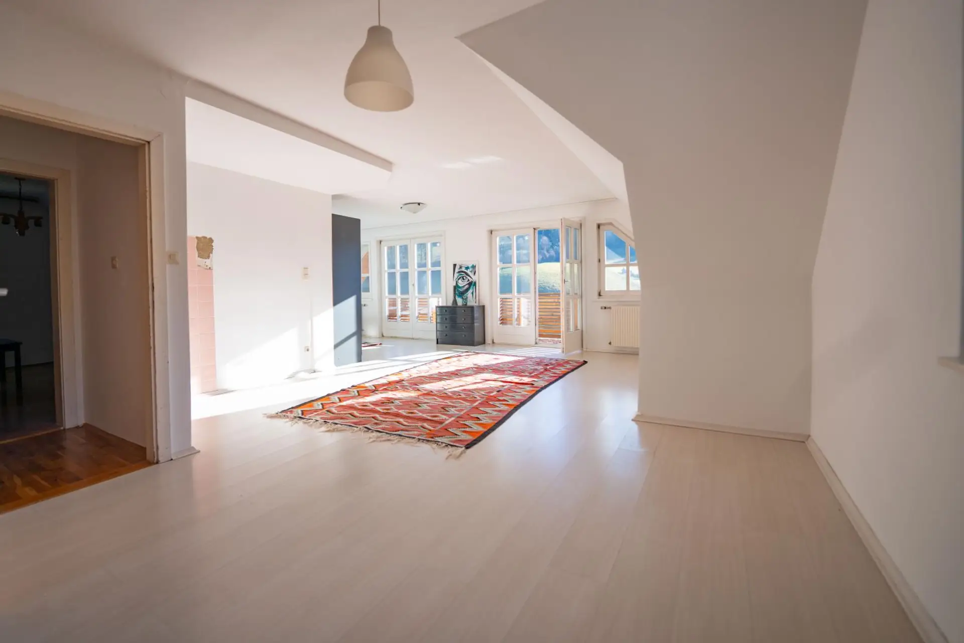Vorraum, zwei Zimmer und ein großzügiger Wohnbereich sowie ehemaliger Duschraum und WC (derzeit ohne Ausstattung, da die alten Installationen entfernt wurden).