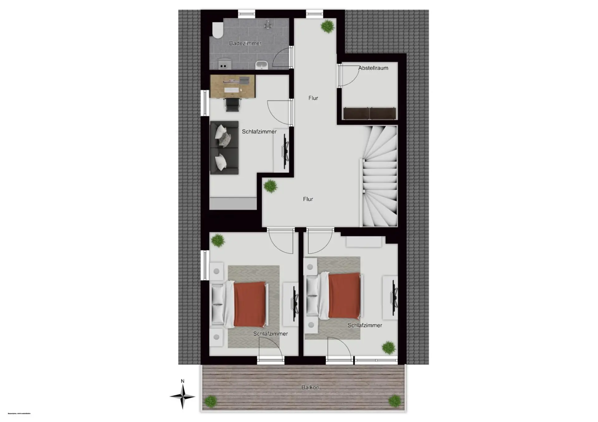 - drei Schlafzimmer im Obergeschoss, plus Balkon mit schönem Ausblick