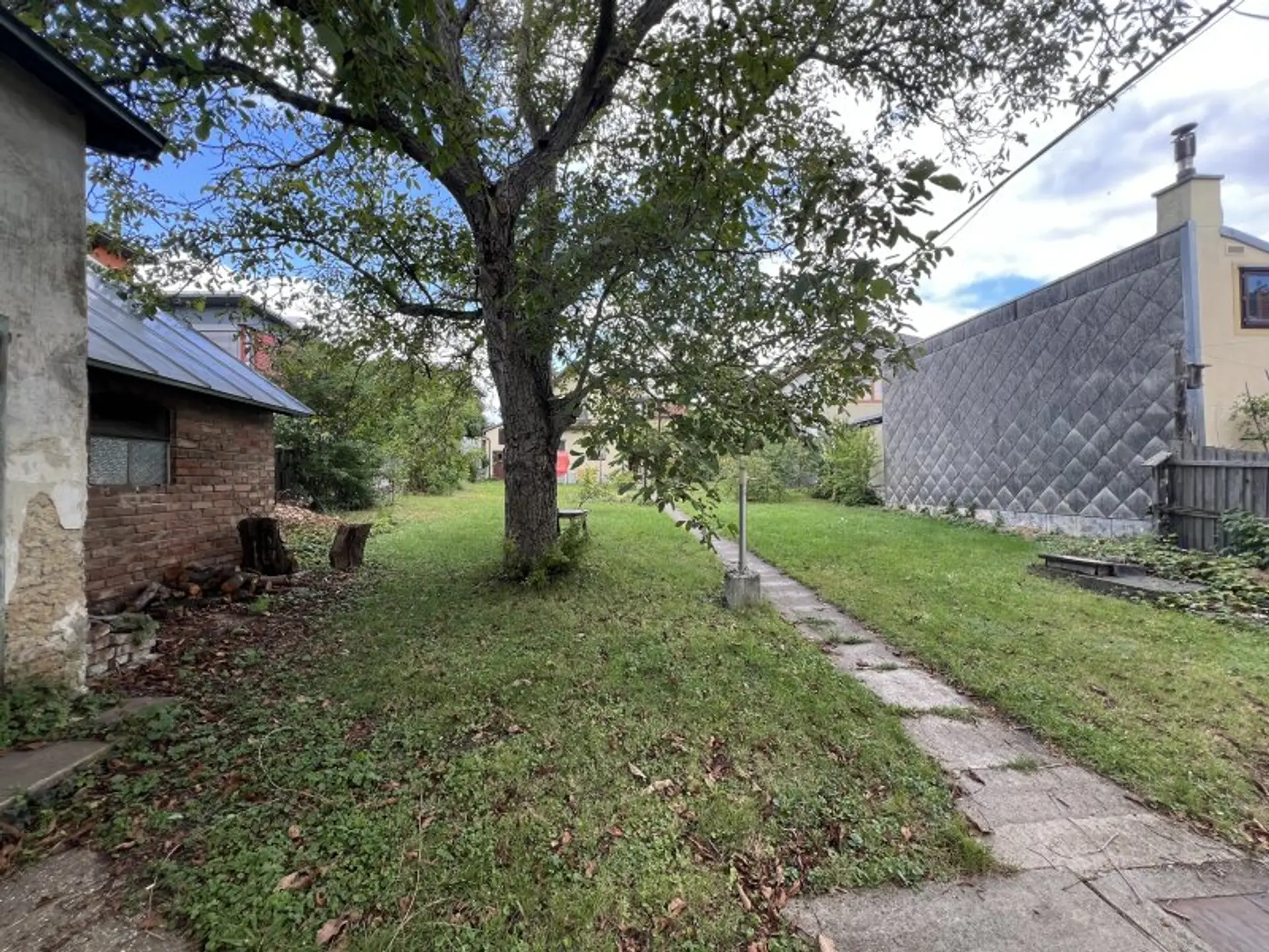 Das Grundstück umfasst insgesamt ca. 600 m² und wird im Zuge des Verkaufs real geteilt – verkauft wird der vordere Teil direkt an der Straße.