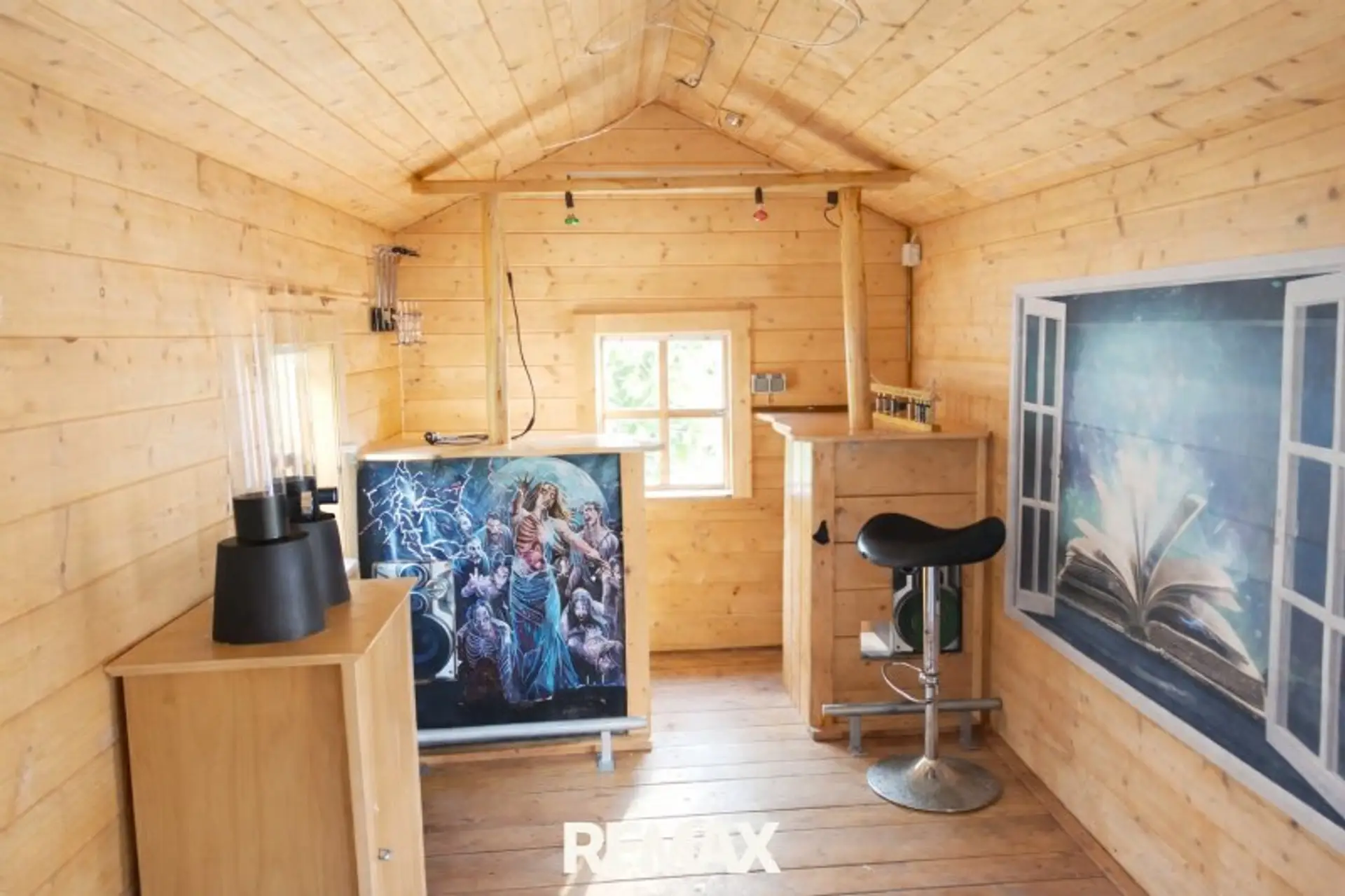 * Holzhütte mit Aufenthaltsräumen und Holzterrasse – ideal für gemütliche Stunden im Freien