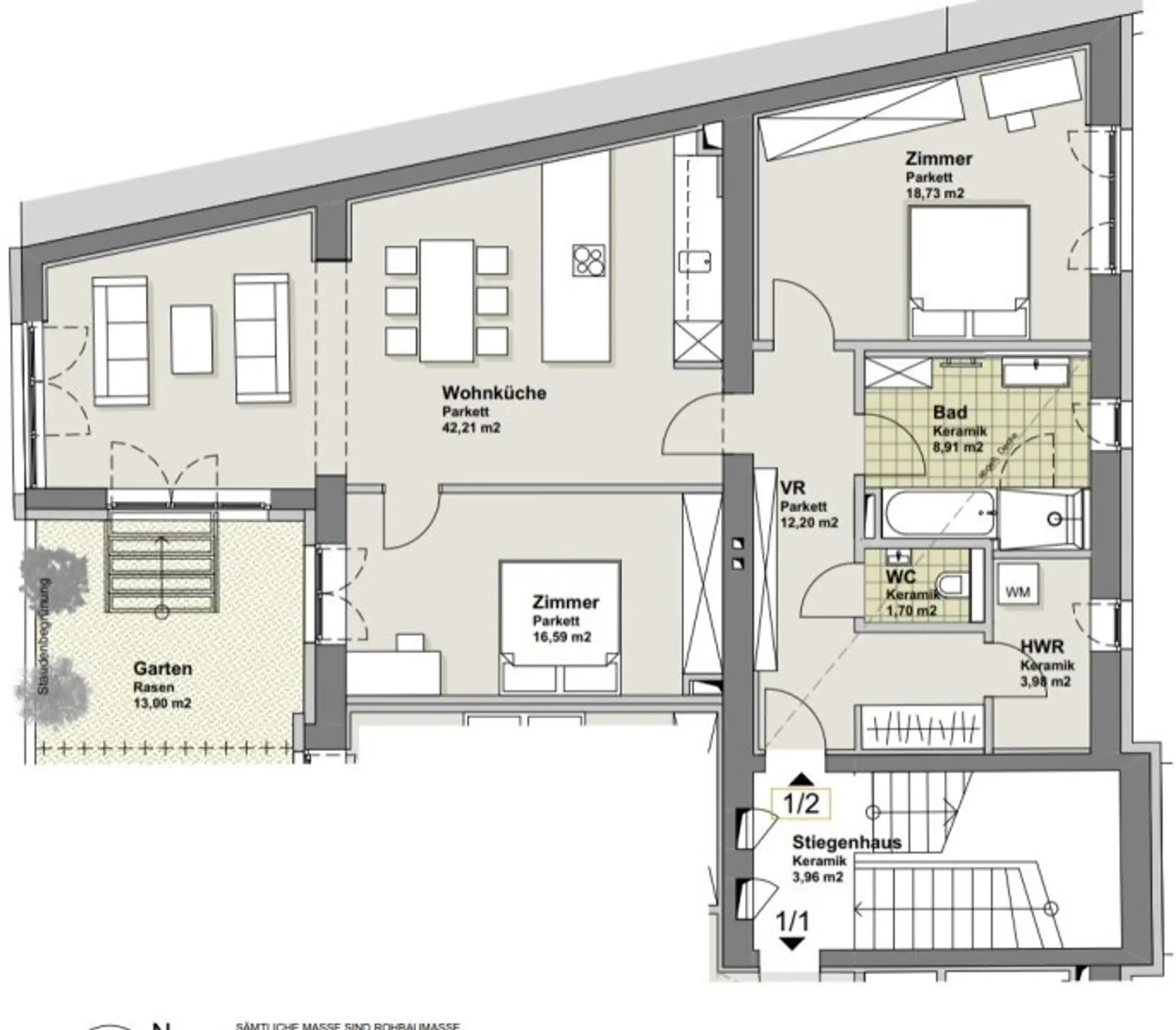 Moderne Wohnung mit sonnigem Garten zur Alleinbenützung.