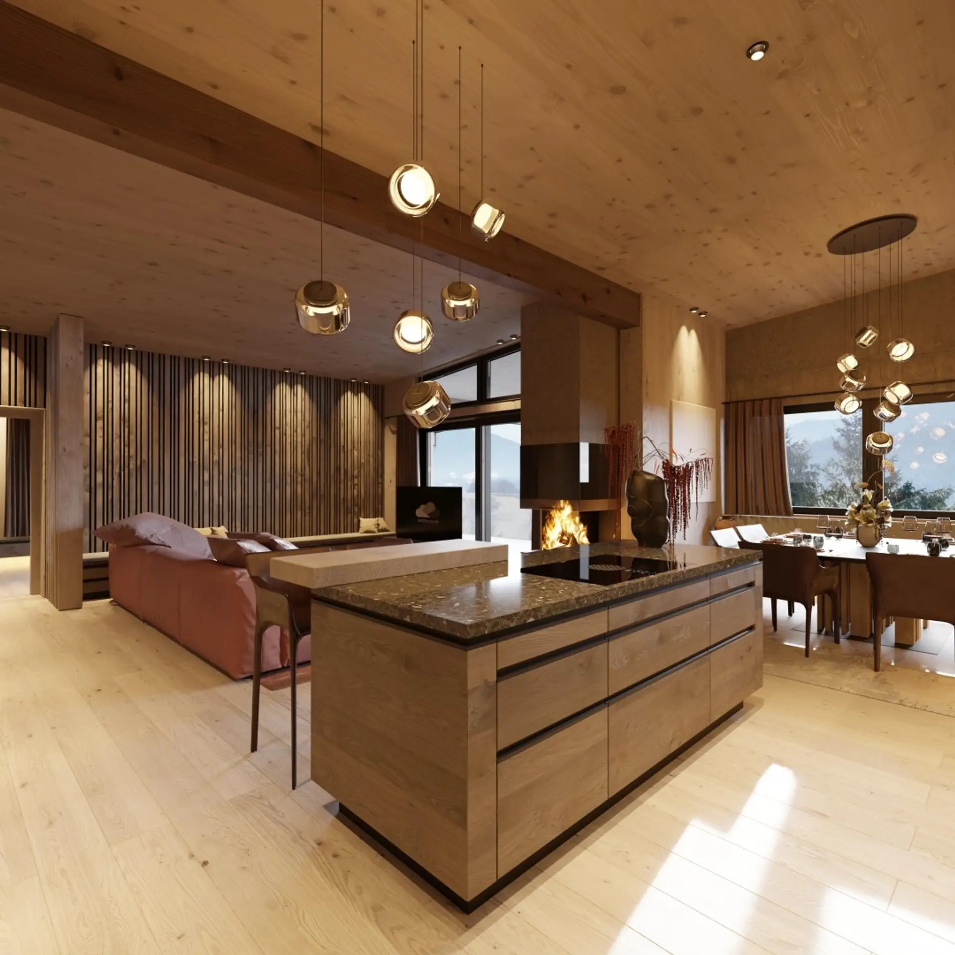 Das Penthouse überzeugt durch seinen alpinen Lifestyle und die einzigartige Aussicht auf die umliegende Bergwelt der Kitzbüheler Alpen.