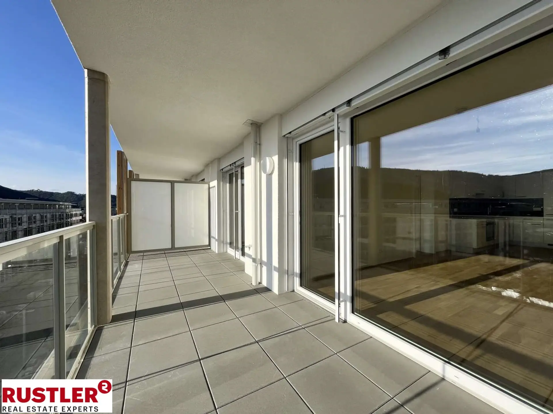 Diese tolle 3-Zimmer-Wohnung befindet sich im 5ten Liftstock und bietet auf ca. 80,56 m² folgende Raumaufteilung: - Vorraum - geräumige Wohnküche - Schlafzimmer - ein weiteres Schlafzimmer mit Zugang zum Balkon und eigenem Schrankraum - Badezimmer mit Badewanne und Waschmaschinenanschluss - separates WC - Balkon mit rd. 16,55 m² Im Vordergrund des Projekts „ParkView Living“ steht die Synergie zwischen nachhaltigem Wohnkomfort und innovativen, zukunftsorientierten Energiekonzepten. Bei der Entwicklung und Umsetzung wurde besonderer Wert auf hochwertige Materialien und erstklassige Ausstattung gelegt. Sämtliche Wohneinheiten bestechen durch ihre durchdachte Raumaufteilung sowie die großzügigen Freiflächen in Form von Balkonen oder Terrassen mit Eigengärten. Weiters dürfen sich die zukünftigen Bewohner auf folgende Features freuen: - qualitätsvolle und vollausgestattete Küchenzeilen - Echtholzparkettböden - Fußbodenheizung und –kühlung - großzügige Kellerabteile Die Bruttomiete setzt sich zusammen aus: Hauptmietzins, Betriebskosten, Möbelmiete und Umsatzsteuer. Heizkosten, Kühlkosten und Energiekosten sind nicht enthalten. ZUKUNFTSORIENTIERTE ENERGIELÖSUNGEN: Energieeffiziente und ressourcenschonende Technologien schaffen höchste Lebensqualität! Die „SmartCity Mitte“ verfügt über ca. 2500 m² Photovoltaikanlagen, die für den Eigengebrauch der Wohnungen und Büros zur Verfügung stehen sowie die notwendige Energie für Heizung und Kühlung bereitstellen. Weiters wird der Energiegehalt des Grundwassers in ca. 40 Metern Tiefe genutzt, um die „SmartCity Mitte“ mit Wärme und Kälte zu versorgen. PARKEN: Optional besteht die Möglichkeit, Parkplätze in der Tiefgarage anzumieten: Monatstarif Dauerparker: € 125,00 pro Monat Lage und Infrastruktur: Im neuen Stadtquartier der „SmartCity Graz“ gelegen, bietet das Projekt „ParkView Living“ seinen Bewohnern höchste Lebensqualität sowie einen großartigen Ausblick zum zukünftigen Herzstück des Quartiers; der Parkanlage! Die Bereiche Wohnen, Arbeiten und Freizeit fügen sich hier zu einem zukunftsfähigen Gesamtkonzept, welches durch smarte Mobilitäts- und Verkehrslösungen abgerundet wird. Mit der neugeschaffenen Verlängerung der Straßenbahnlinie 6 ins Zentrum des Areals, wurde auch eine direkte Anbindung zum Grazer Stadtzentrum sowie dem linken Murufer realisiert. Mietbeginn: ab sofort Mietdauer: Auf 5 Jahre befristet Informieren Sie sich auf unserer Projekthomepage www.parkview-living.at Weitere Immobilienangebote finden Sie unter www.rustler.eu/immobiliensuche