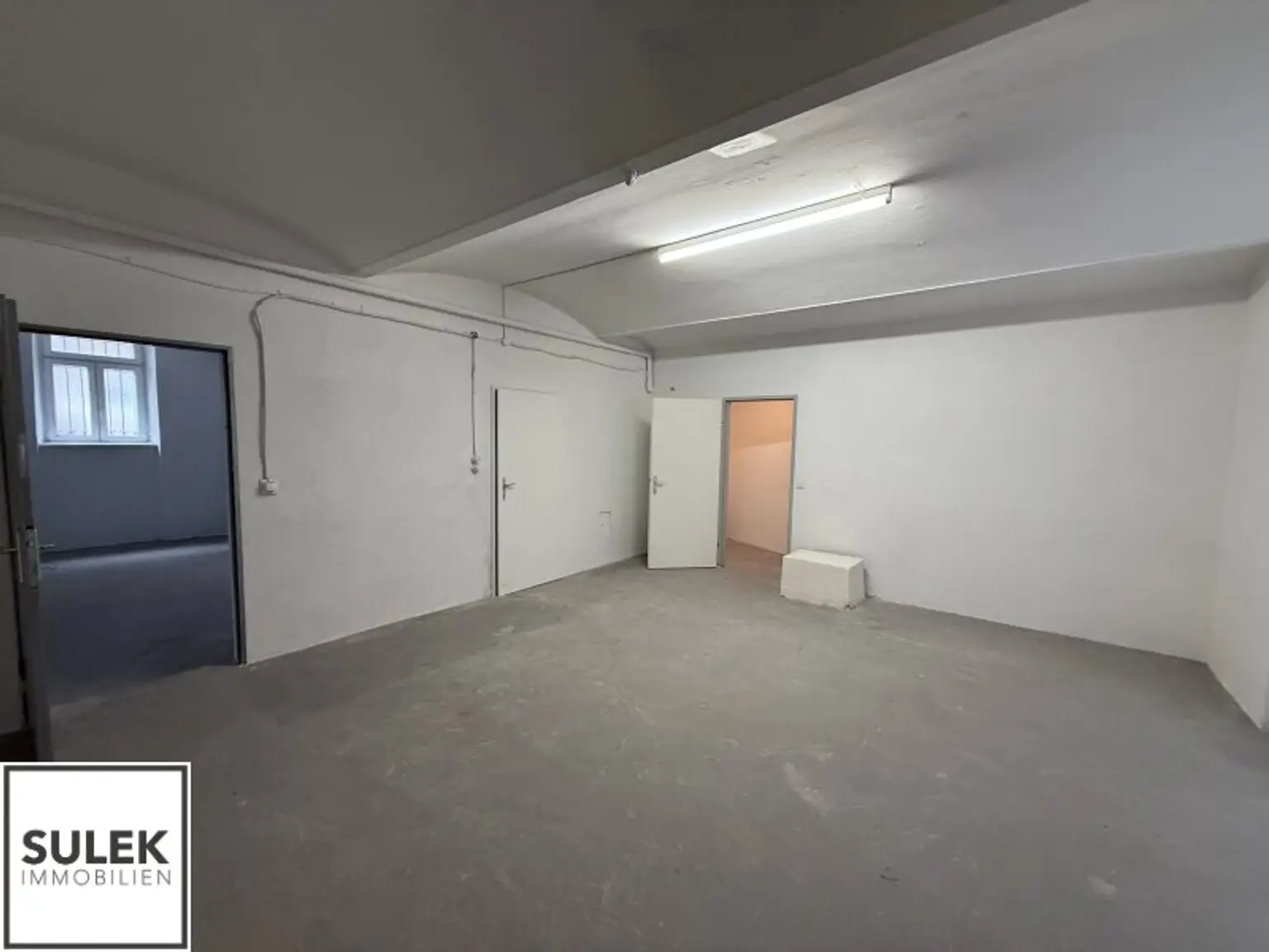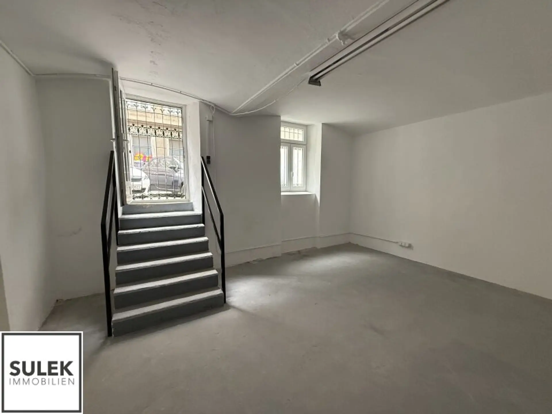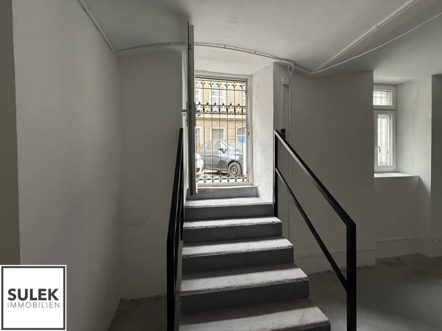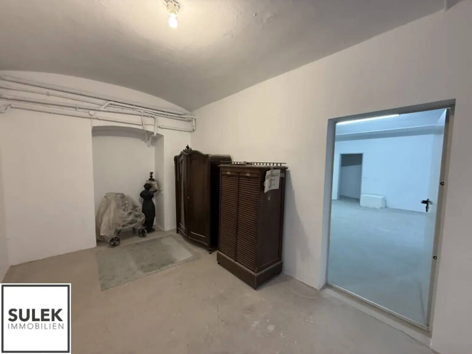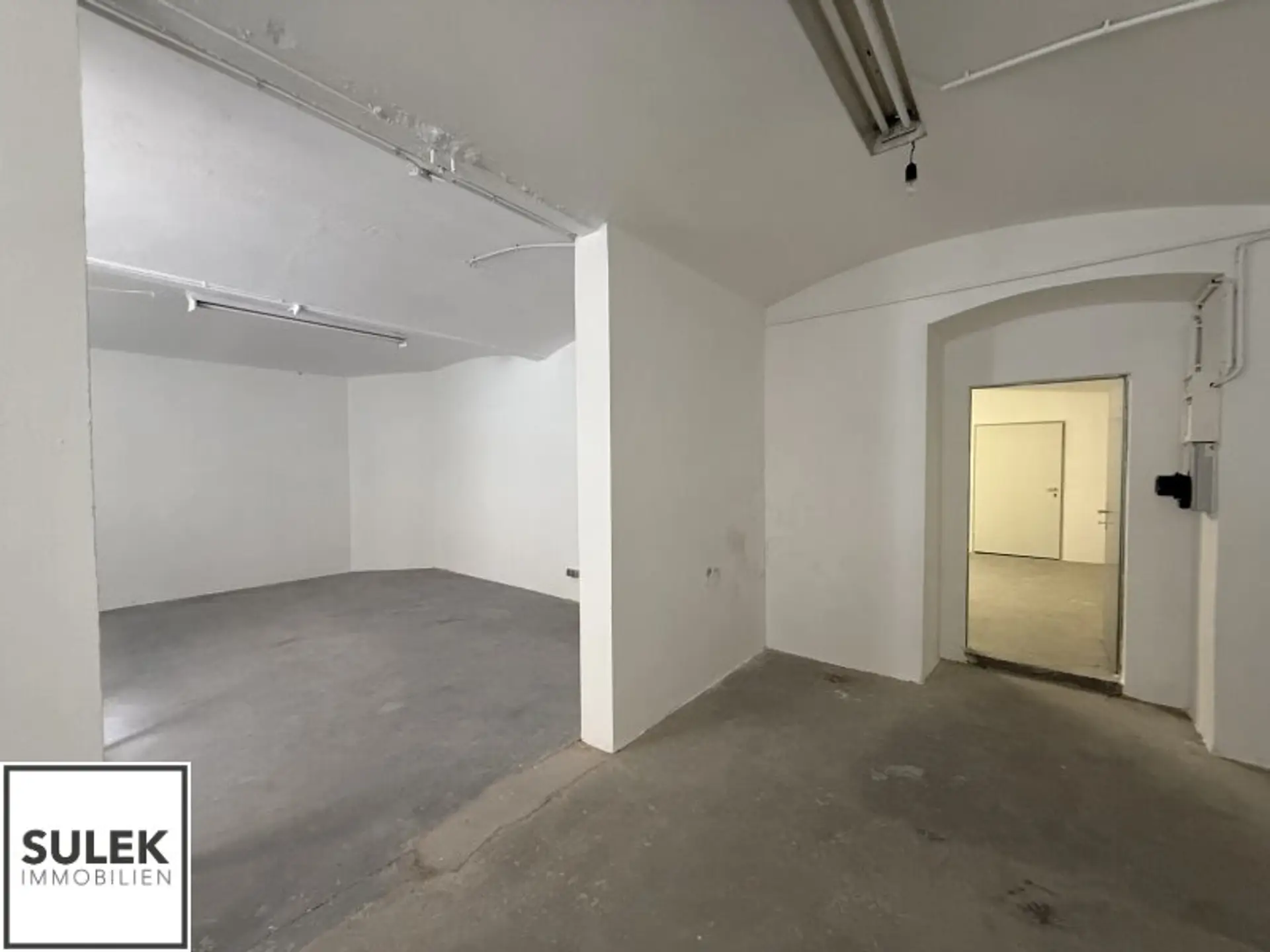 Dieses rd. 107m² große Lager liegt im Souterrain, ist trocken und gut zugänglich (Haustor Eingang und Straßeneingang).