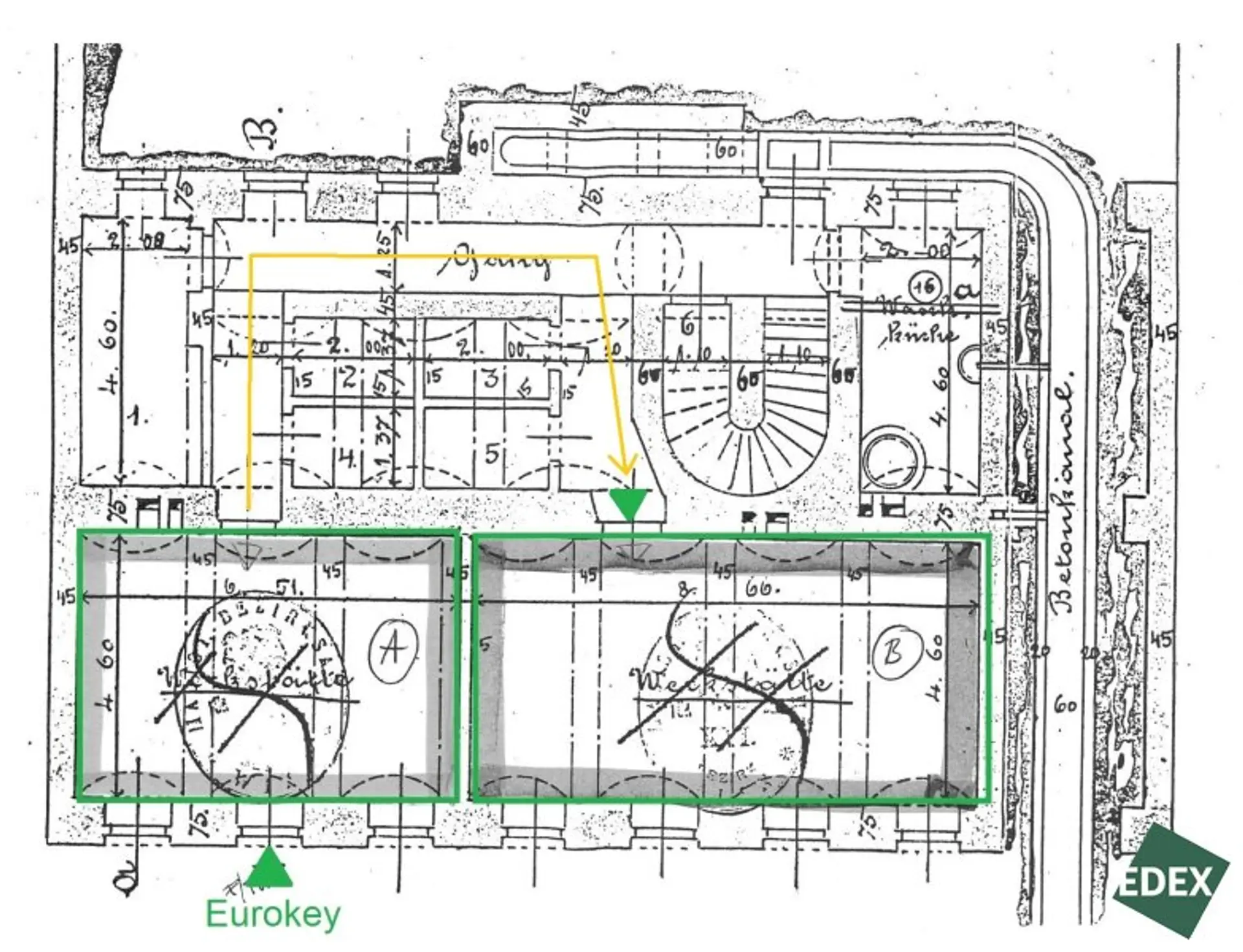Das Objekt besteht aus zwei voneinander getrennten Flächen. Top 17 verfügt über einen straßenseitigen Zugang sowie einen Zugang vom Keller aus. Top 18 verfügt nur über einen Zugang vom Keller aus.