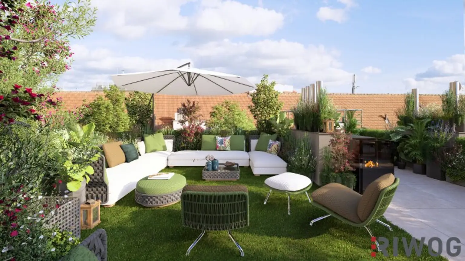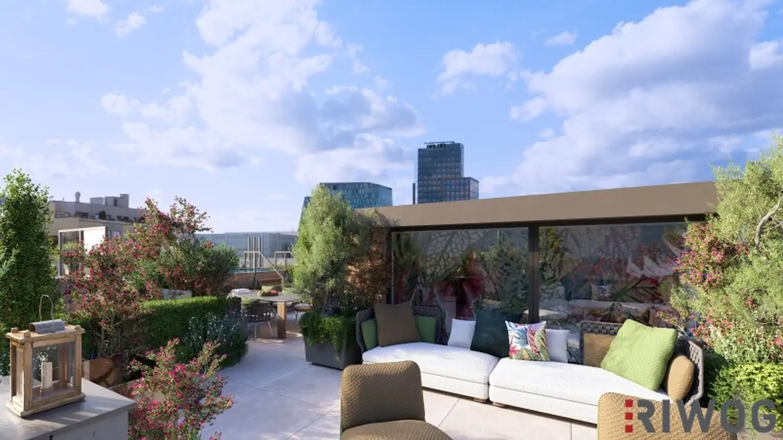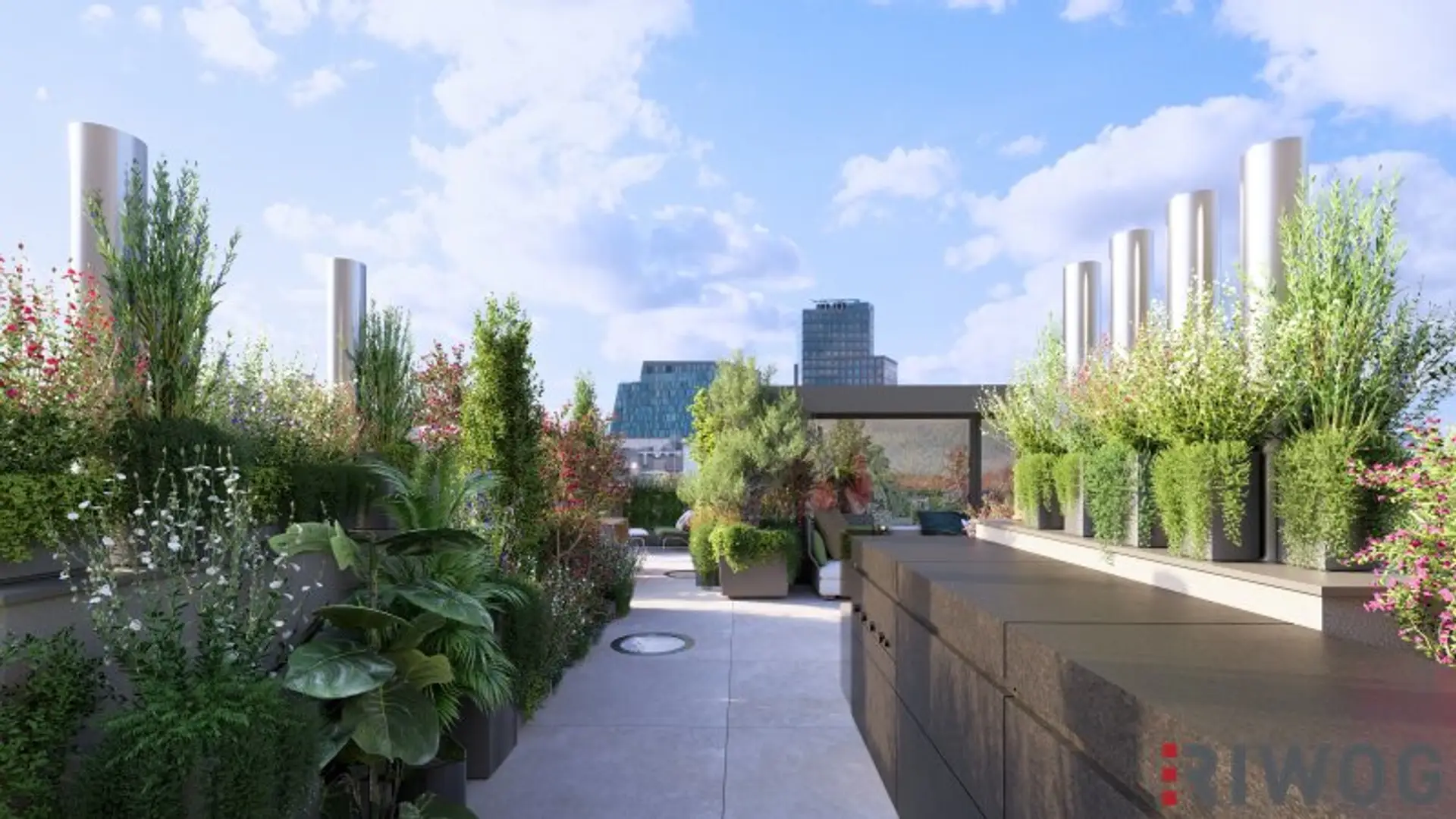 * 1 luxuriöses Penthouse (4 Zimmer, gesamtes 2. DG) mit Dachgarten und optionalem Pool (optional 2 Mietstellplätze direkt gegenüber in der Sofiensäle-Garage)
