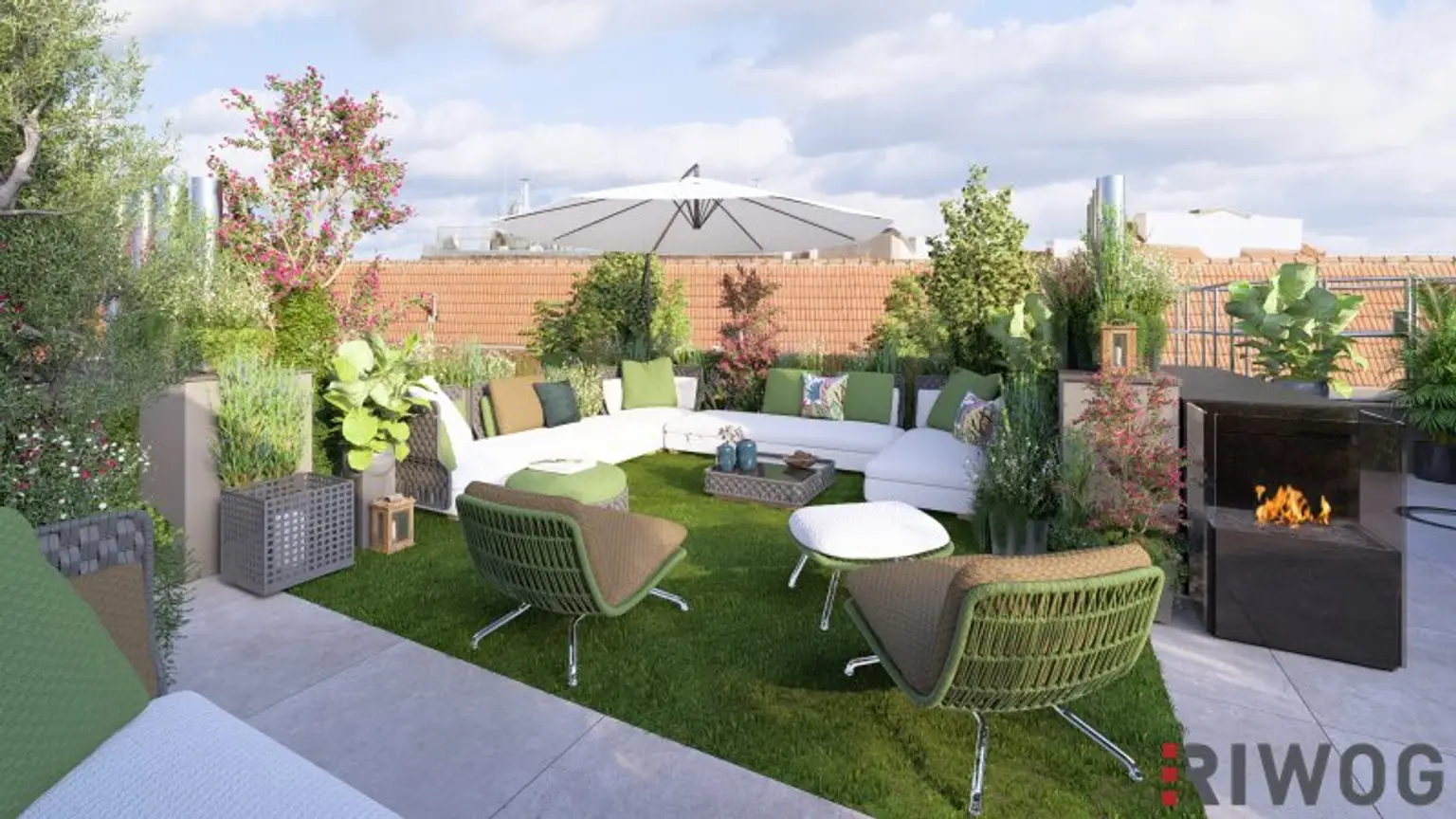 Die beeindruckende, ca. 114 m² große Dachterrasse mit Loungearea, Platz für eine Outdoor-Kitchen und optionalem Pool wird zur Bühne für unvergessliche Sonnenuntergänge, Feste und stille Momente – Luxus, der sich nicht nur sehen, sondern spüren lässt.