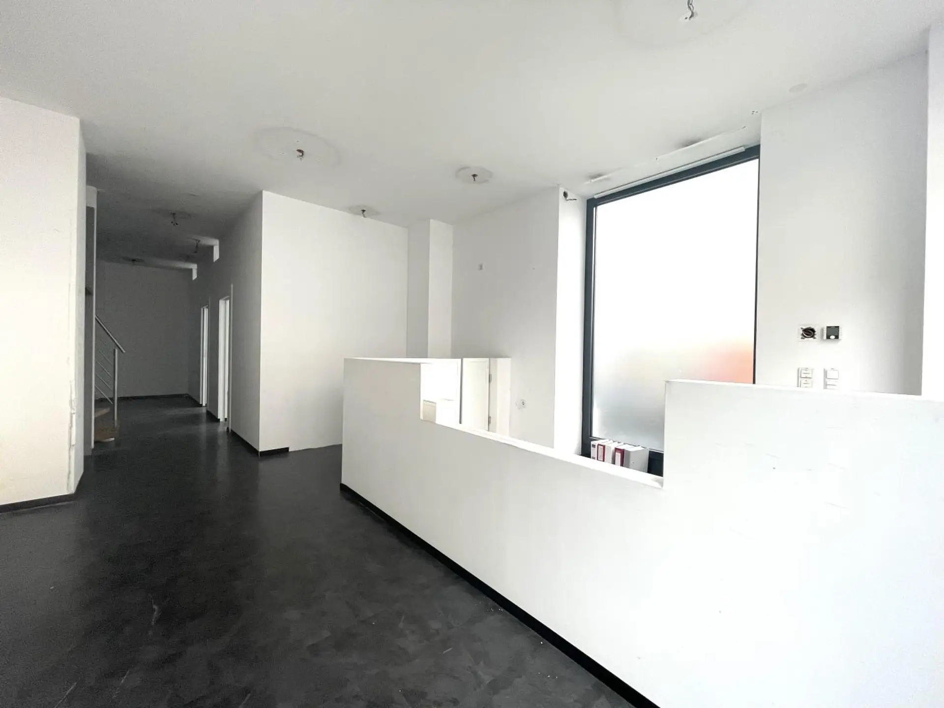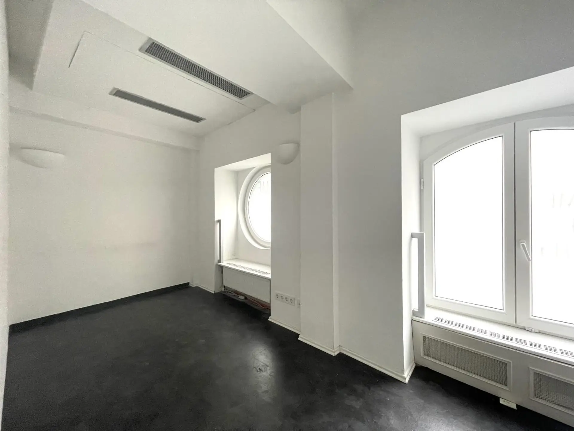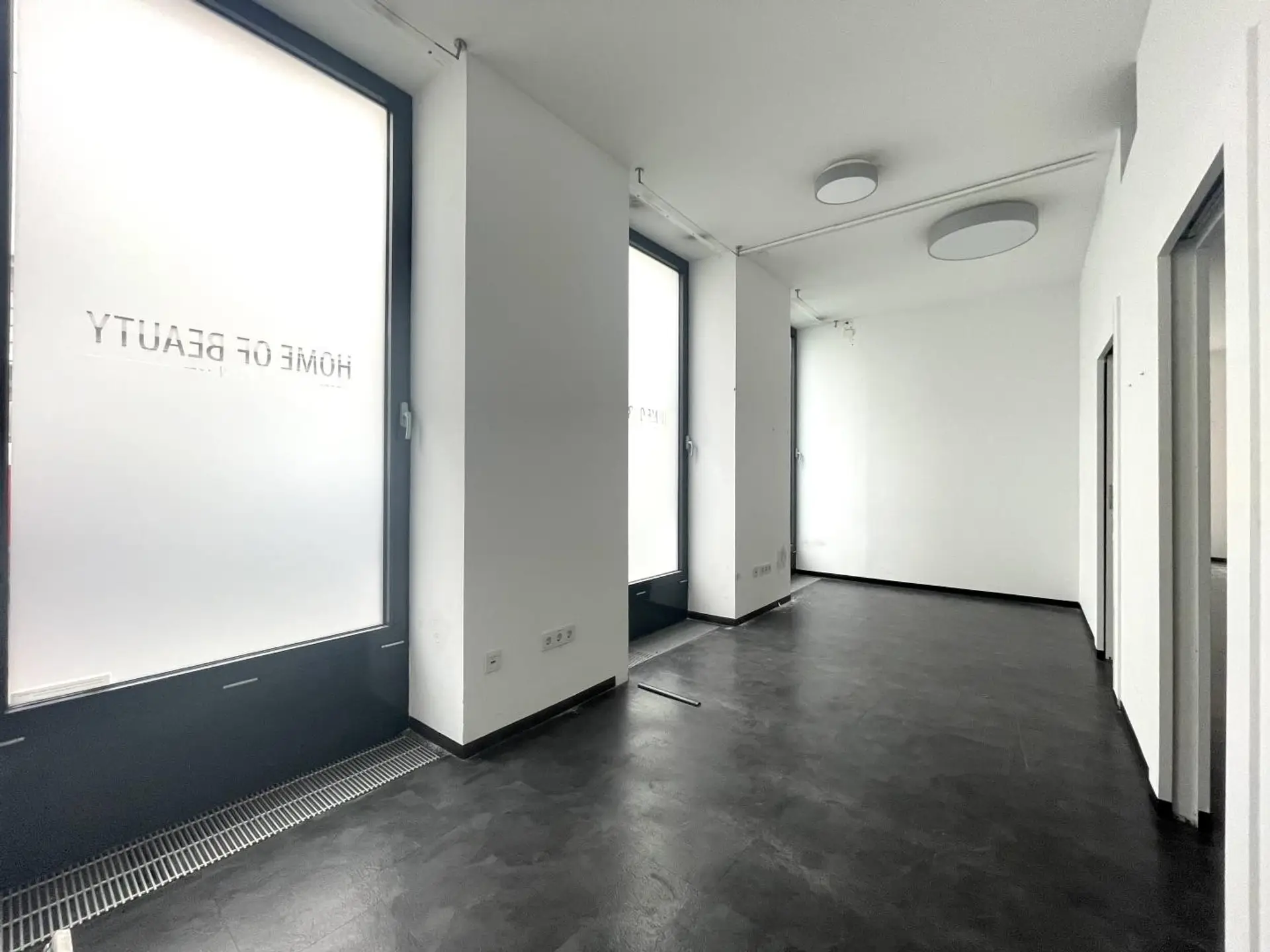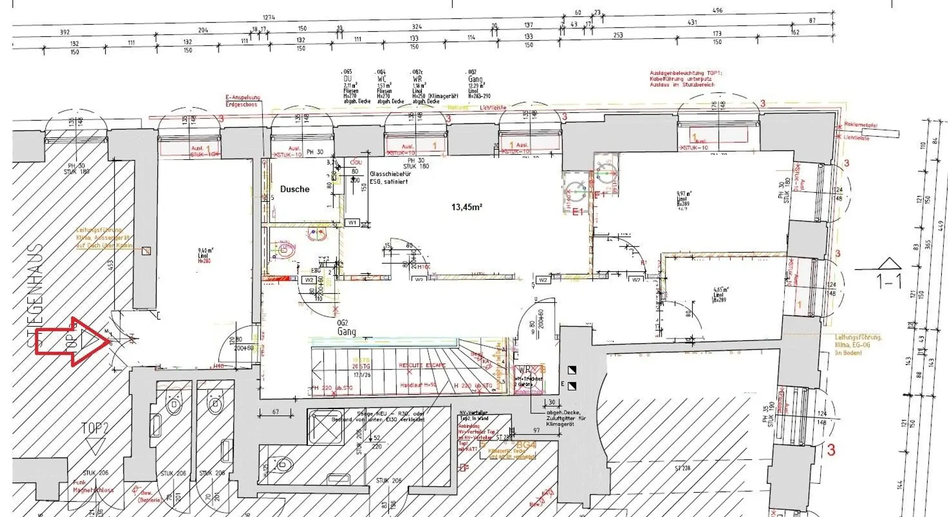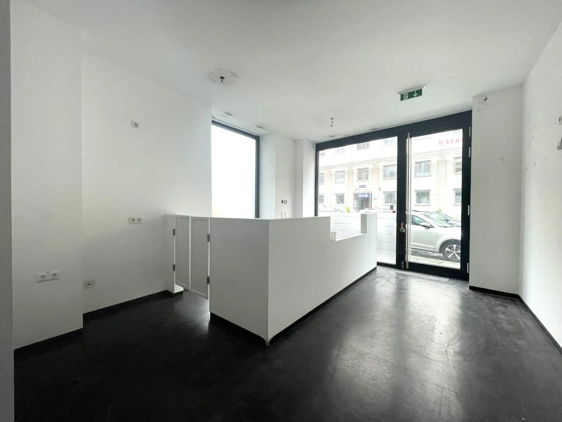 Die Fläche teilt sich auf eine Erdgeschoßfläche (57,17m²) mit direktem Straßenzugang von der Burggasse und eine weitere Fläche im 1. OG (52,41m²), die über eine innenliegende Treppe und auch direkt über das Stiegenhaus (1. Liftstock) erreichbar ist, auf.