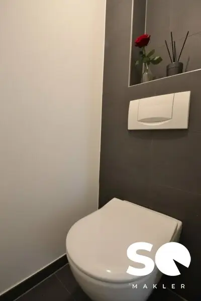 WC: 1 mit hochwertigen Keramiken von Villeroy & Boch, Armaturen von Hansgrohe (black-line)