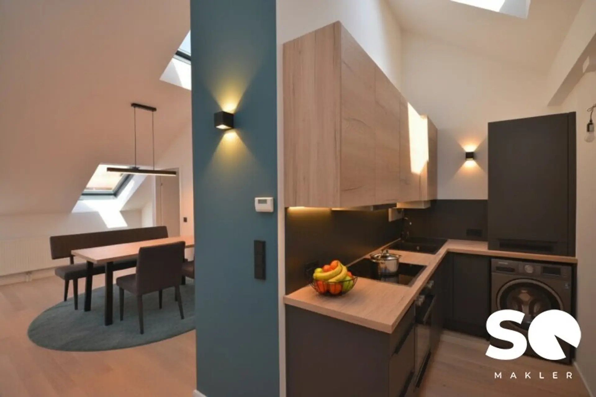 Die Schönheit liegt im Detail, denn hoch oben im Dachgeschoss befindet sich diese lichtdurchflutete Dachgeschosswohnung für den style-bewussten Anspruch. Nach erstmaliger Vermietung nach hochwertiger Generalsanierung, soll diese nun wieder neuen Mietern ein schönes Zuhause bieten. An der Grenze zum 2. Bezirk in einer sehr attraktiven Lage zwischen dem Gaußplatz und Wallensteinplatz liegt diese Wohnung im Dachgeschoss eines Wiener Zinshauses nur wenige Schritte vom wunderschönen Augarten und Donaukanal entfernt. Beeindrucken Sie Ihre Gäste mit dem Design, der Funktionalität, der Raumhöhe und Geräumigkeit dieser Wohnung. Direkt neben dem Wohnungseingang befindet sich ein wenig frequentierter, überdachten Laubengang im Freien, welcher zum Frischluftschnappen einlädt. Ein Blick aus den Fenstern lässt Sie über die Dächer Wiens bis zum Kahlenberg und Nachts auf den Sternenhimmel blicken.