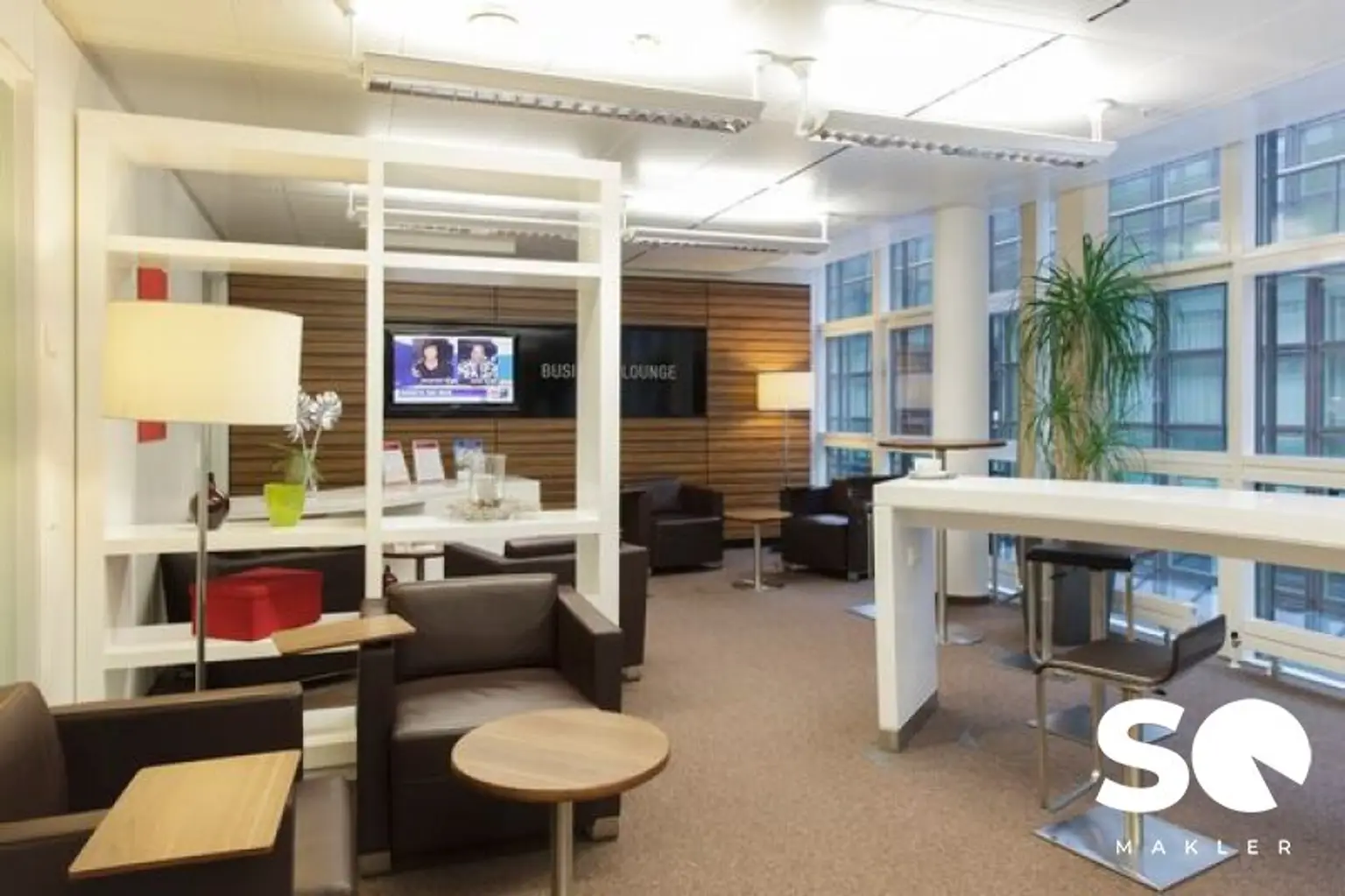 Es gibt sowohl private Büros, als auch Gemeinschaftsflächen und eine Business Lounge.