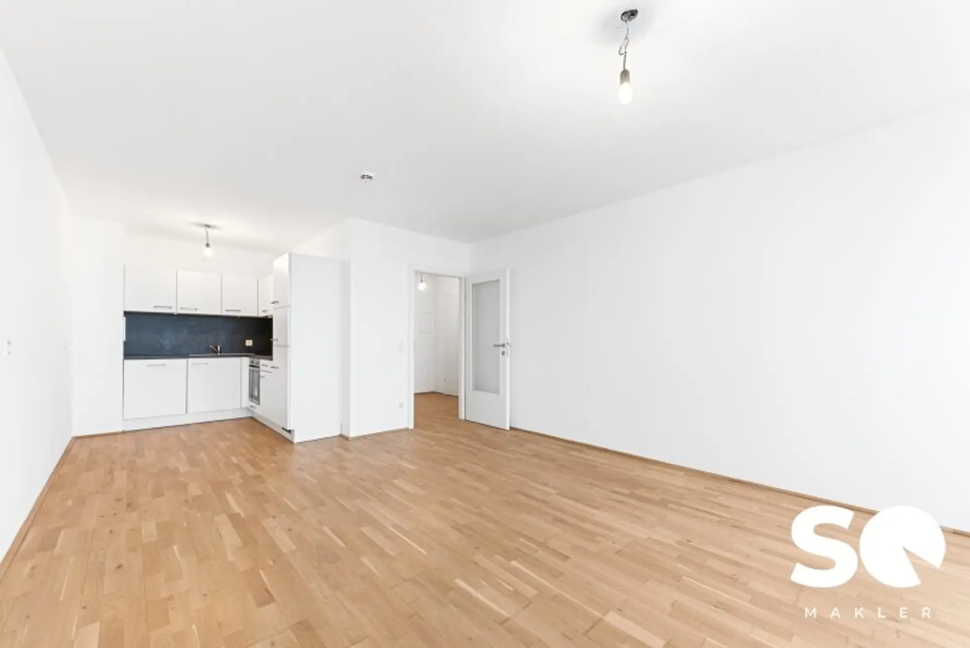 Offener, heller Wohnbereich mit moderner Einbauküche – perfekt für entspannte Abende oder mit Gästen.