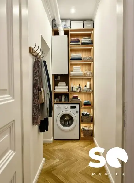 einen zusätzlichen gut nutzbaren Abstellraum in dem Waschmaschine und Therme elegant verborgen werden können.(ca. 2,8 m²),