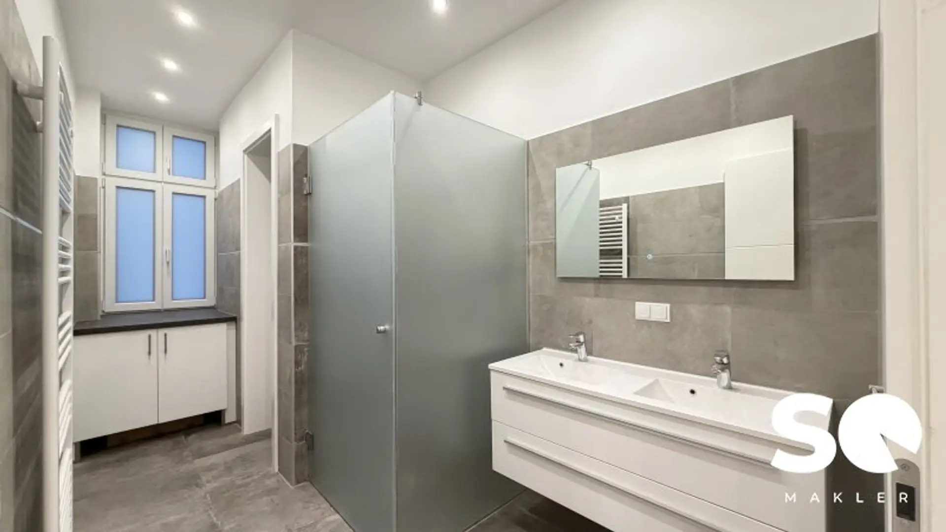 * geräumiges Bad mit Doppelwaschtisch