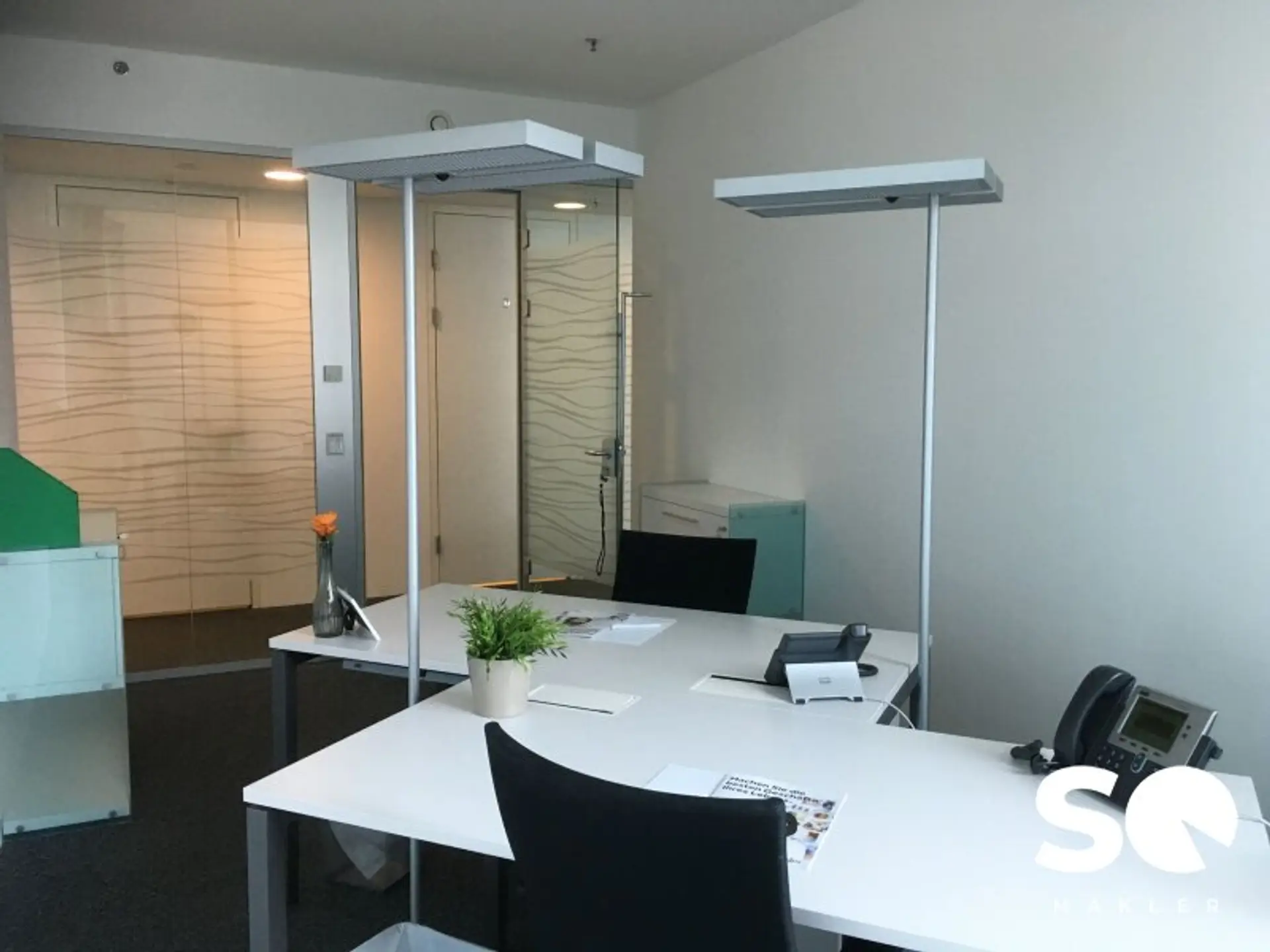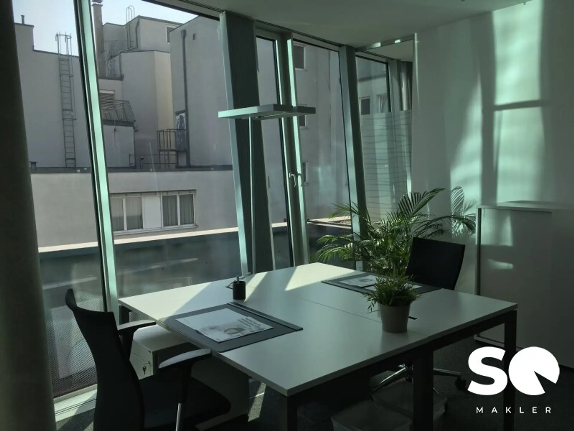 Dieses Büros bieten bodentiefe Fenster und einen schönen Ausblick auf die Mariahilfer Straße. Das Gebäude besitzt eine moderne, stylische Glasfassade und sticht aus der Masse heraus.