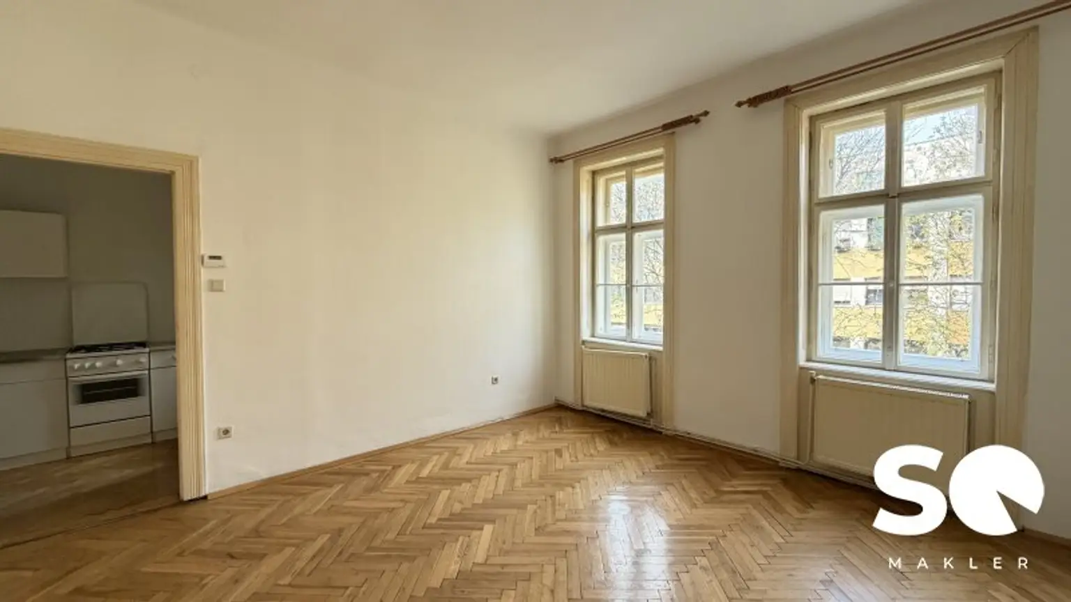 Die gut geschnittene Wohnung befindet sich im 1. Stock eines schöne Stilaltbaus und liegt nur eine Gehminute von der Straßenbahnhaltestelle Weinhausergasse entfernt.
