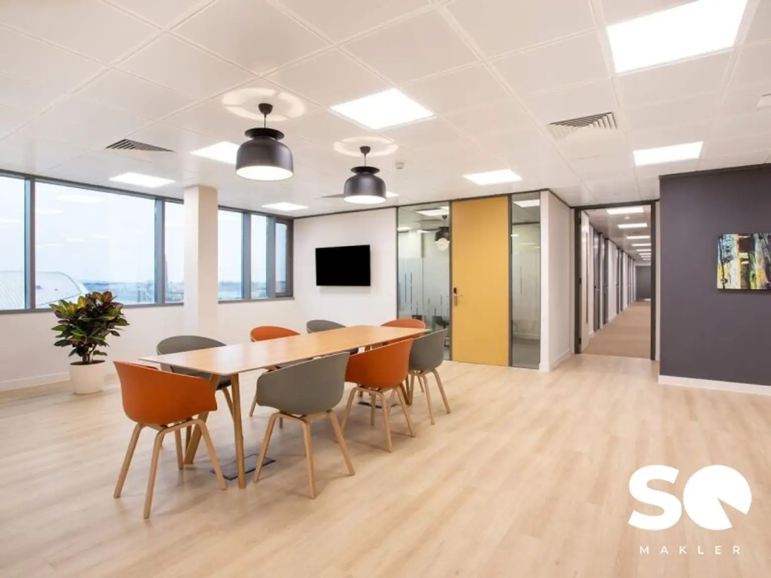Enjoy working in an environment flooded with plenty of natural light streaming through floor-to-ceiling windows, enhancing productivity and focus.