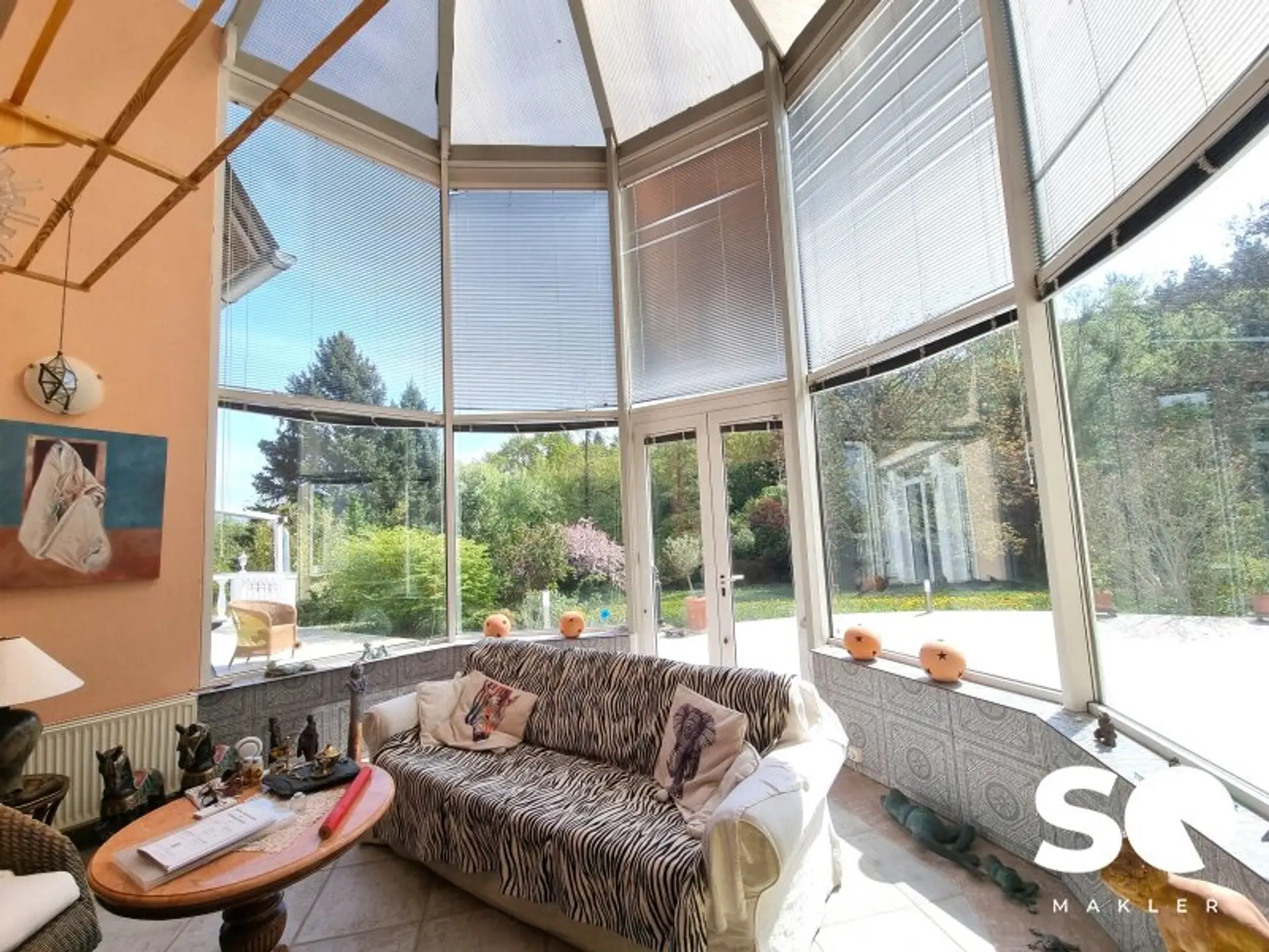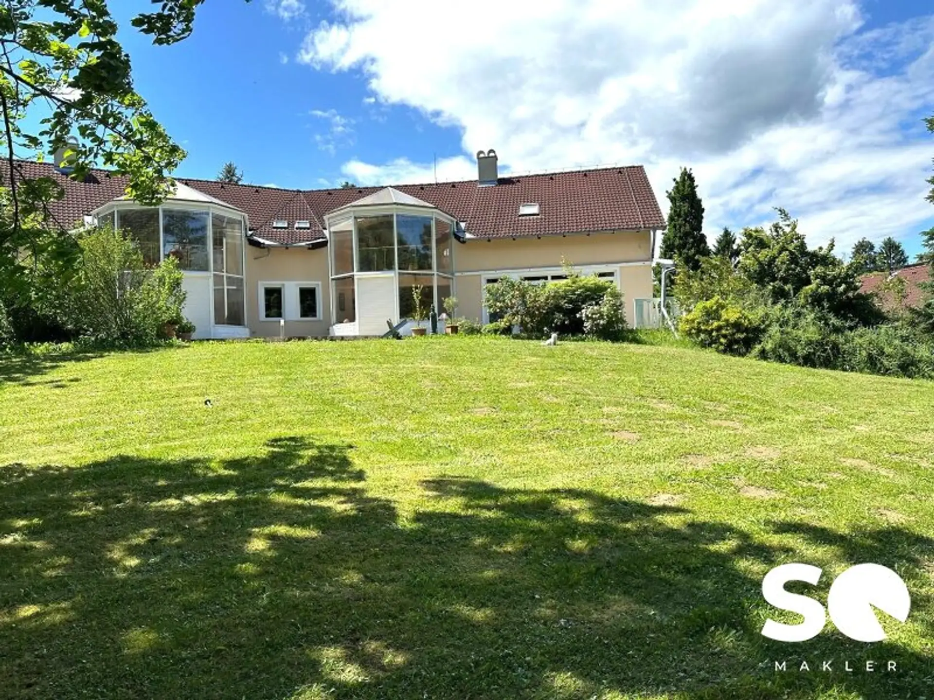Diese außergewöhnliche, architektonisch durchdachte Villa vereint Großzügigkeit, Licht und gestalterische Freiheit auf höchstem Niveau. Errichtet im Jahr 2000 nach den individuellen Anforderungen zweier Künstlerinnen, präsentiert sich das Anwesen als stilvolle Symbiose aus Wohnraum, Atelier und Rückzugsort. Auf einem weitläufigen Grundstück von ca. 6.000 m², idyllisch am Waldrand gelegen, erstreckt sich das repräsentative Bauwerk mit rund 700 m² Wohnnutzfläche. Das Alleinstellungsmerkmal hierbei ist, dass es sich um 3 zusammengefasste Parzellen handelt. Die besondere architektonische Konzeption – zwei spiegelgleiche, separat nutzbare Wohneinheiten mit gemeinsamem Entrée – eröffnet vielseitige Nutzungsmöglichkeiten auf höchstem Niveau. Großzügige Raumhöhen, lichtdurchflutete Wintergärten über zwei Ebenen sowie offene, loftartige Grundrisse schaffen ein inspirierendes Ambiente für anspruchsvolles Wohnen und kreatives Arbeiten.
