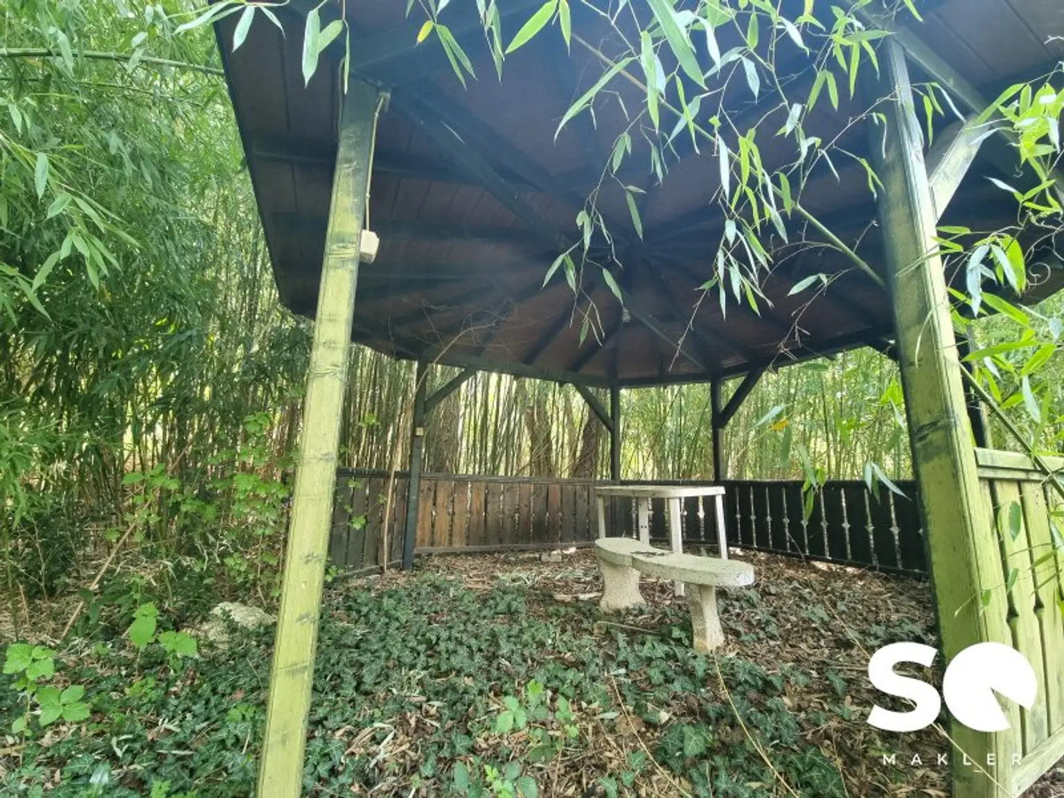 Der weitläufige Garten mit altem Baumbestand (Walnuss-, Feigen-, Apfel- und Kirschbäume) bietet ein außergewöhnliches Maß an Privatsphäre und Entfaltungsmöglichkeiten.
